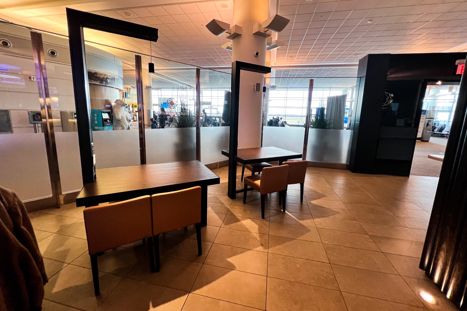 It’s also worth noting that there are no bathrooms located inside this lounge. Rather, you’ll have to venture outside into the departures concourse to access the facilities.