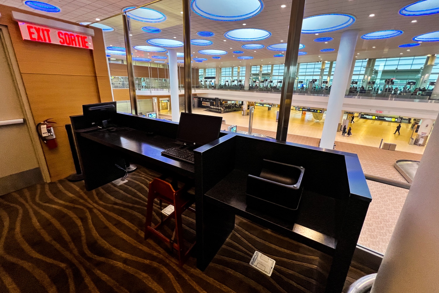 The lounge is situated right across from Gates 5 and 6, and is easily identifiable by its name prominently illuminated at the entrance.
