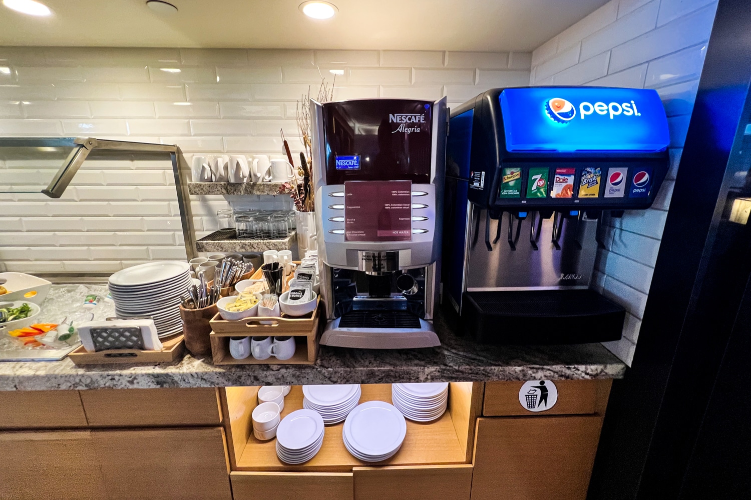 The beverage station is also self-serve, and features soft drinks and a Nescafé coffee machine.