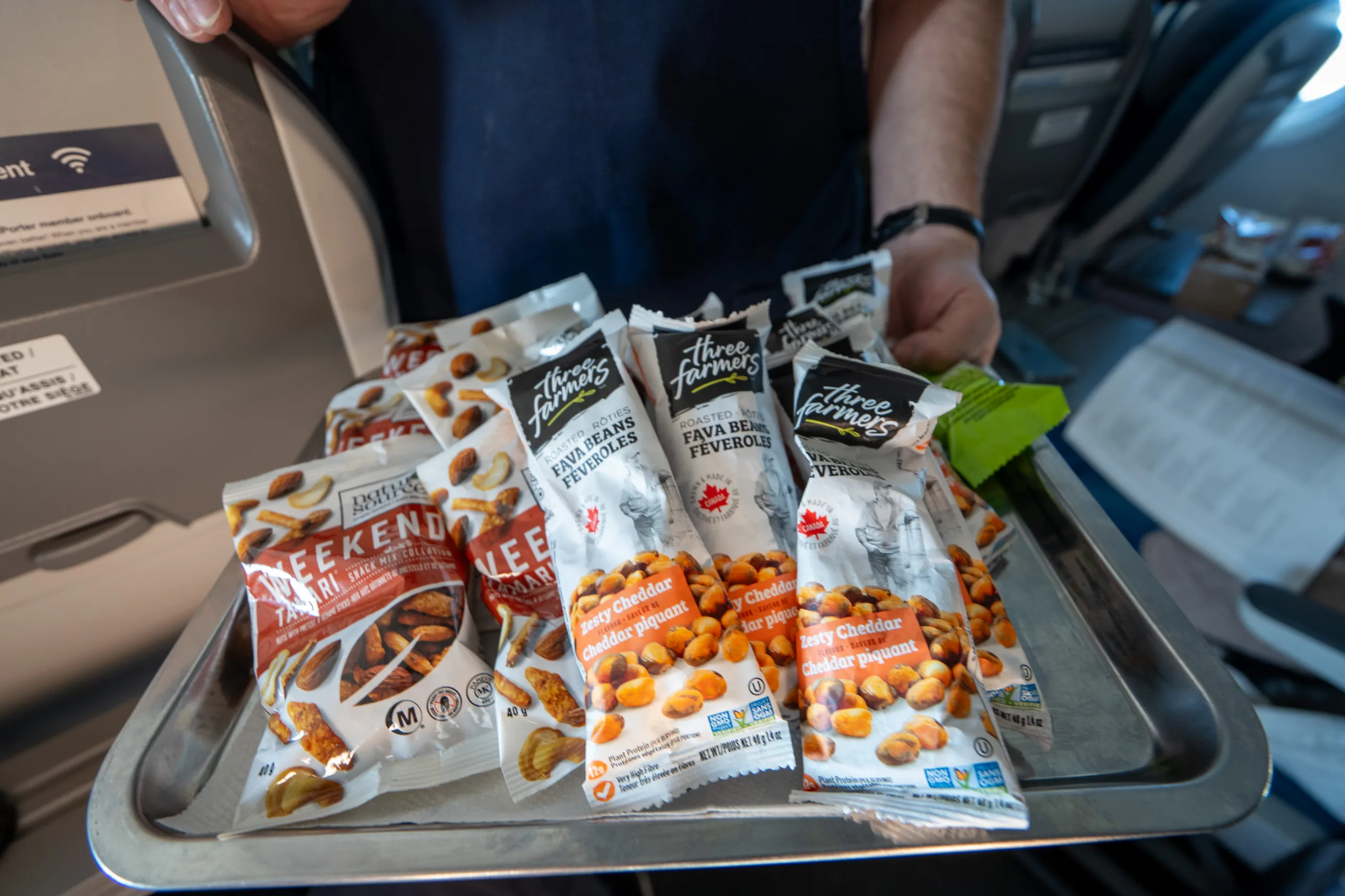 As part of the elevated economy experience, Porter Airlines offers all passengers a choice of free snacks and complimentary wine, beer, and other refreshments.