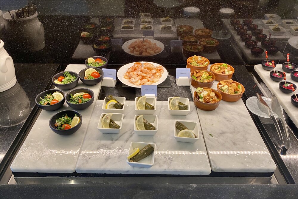 Ritz-Carlton lounges are known for their daily meal presentations, allowing guests to enjoy all their meals in the lounge if they wished. Since I had plenty of time to kill in Doha, I didn’t feel bad about staying in the hotel for the duration of my stay and making use of the breakfast and lunch services (twice) and the evening hors d’oeuvres (once).
