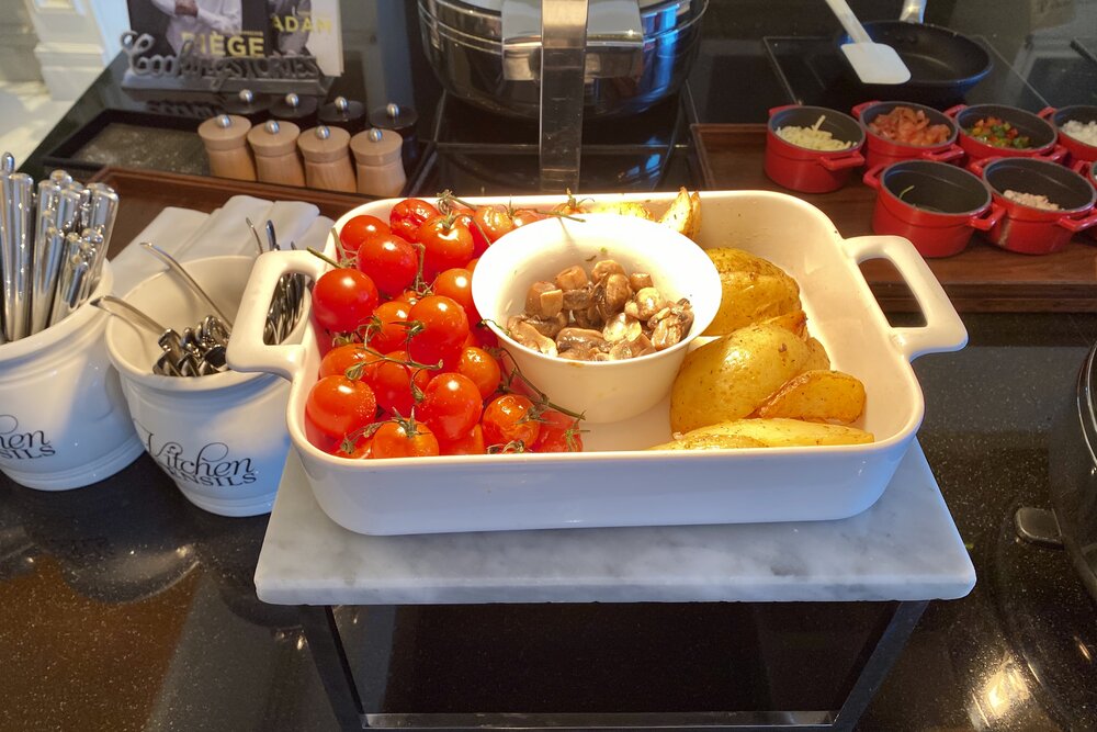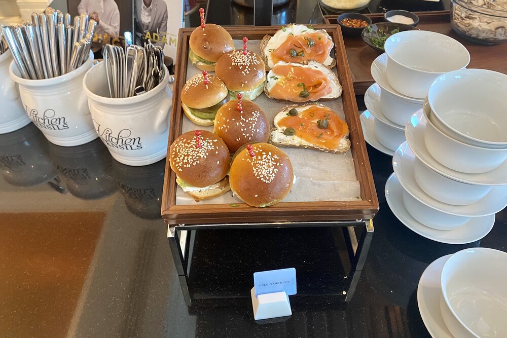 Each meal tended to include a light spread from the buffet, as well as one or two dishes that the chef could prepare for you at the live cooking station. If the chef didn’t happen to be there when you were getting your food, then a Club Lounge host like Nicholas would readily pop over and say, “Let me get the chef for you.”