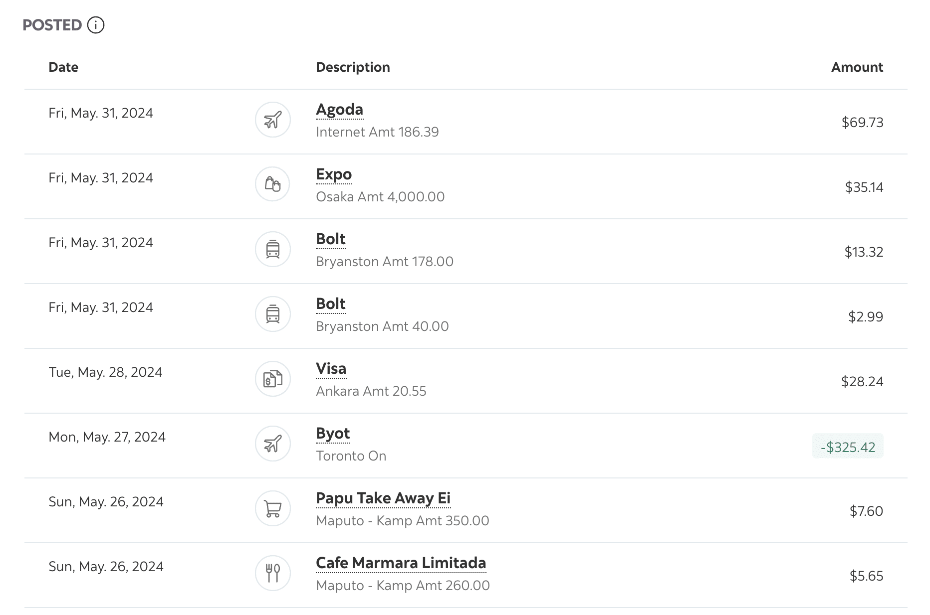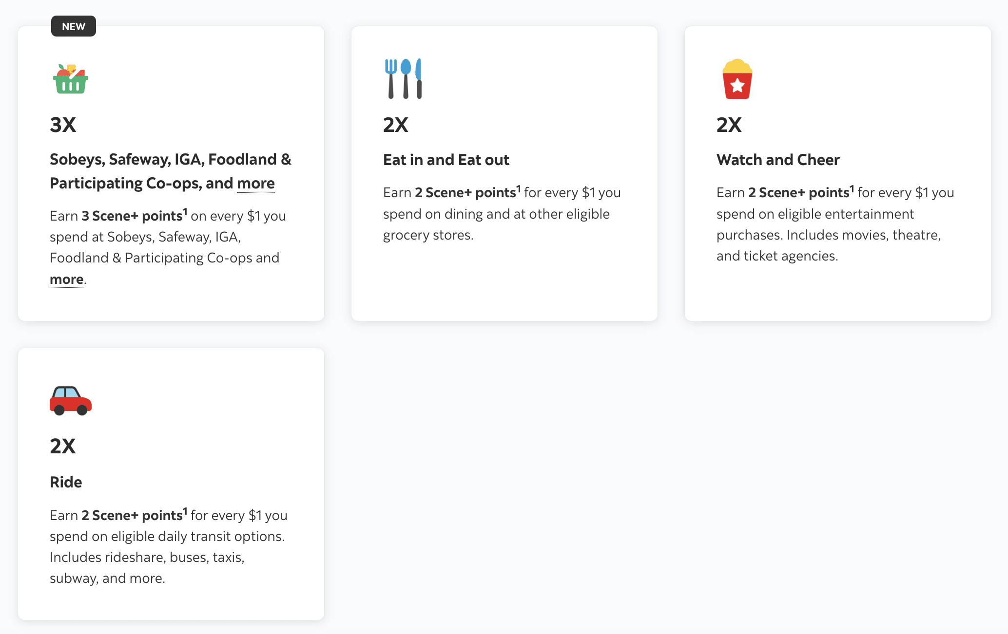 Keep in mind that the earning rates above only apply to purchases in Canadian dollars. Foreign currency transactions in any category earn a flat rate of 1 Scene+ point per dollar spent (converted).
