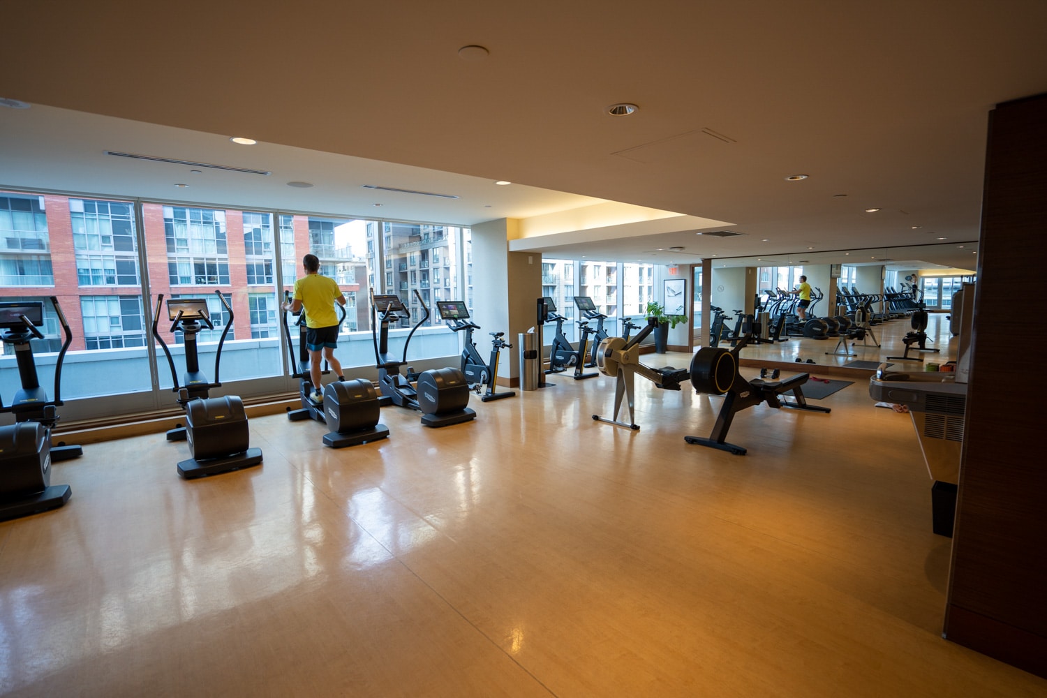 The Health Club is a fully stocked 24-hour fitness centre filled with high-tech exercise equipment. Inside, there is an ample selection of cardio and strength machines, as well as a studio for yoga, pilates, and aerobics overlooking the city skyline.