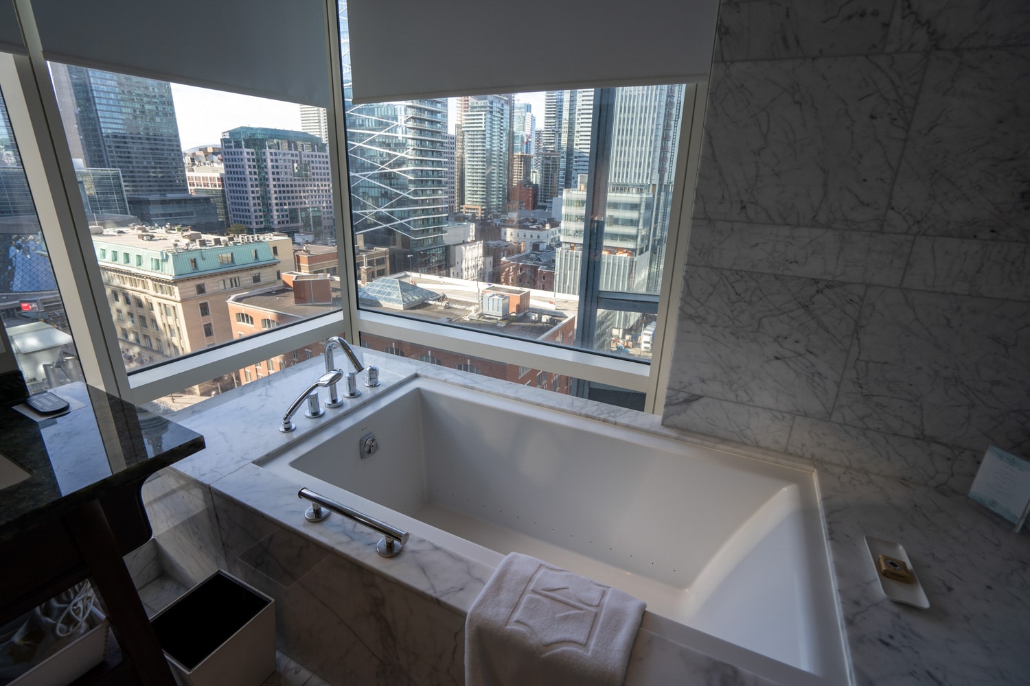 The highlight of the rooms at the Shangri-La Toronto is the floor-to-ceiling windows which offer panoramic views of the city.