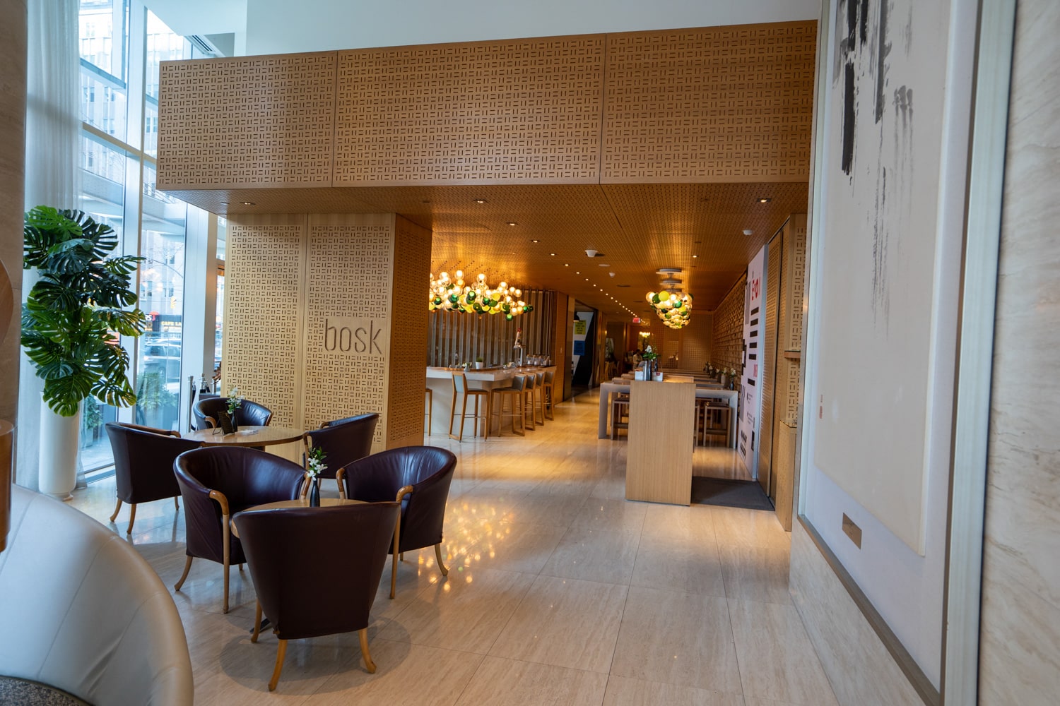 The lobby also has an afternoon tea service, where a selection of 68 unique blends of tea is available for guests to enjoy.