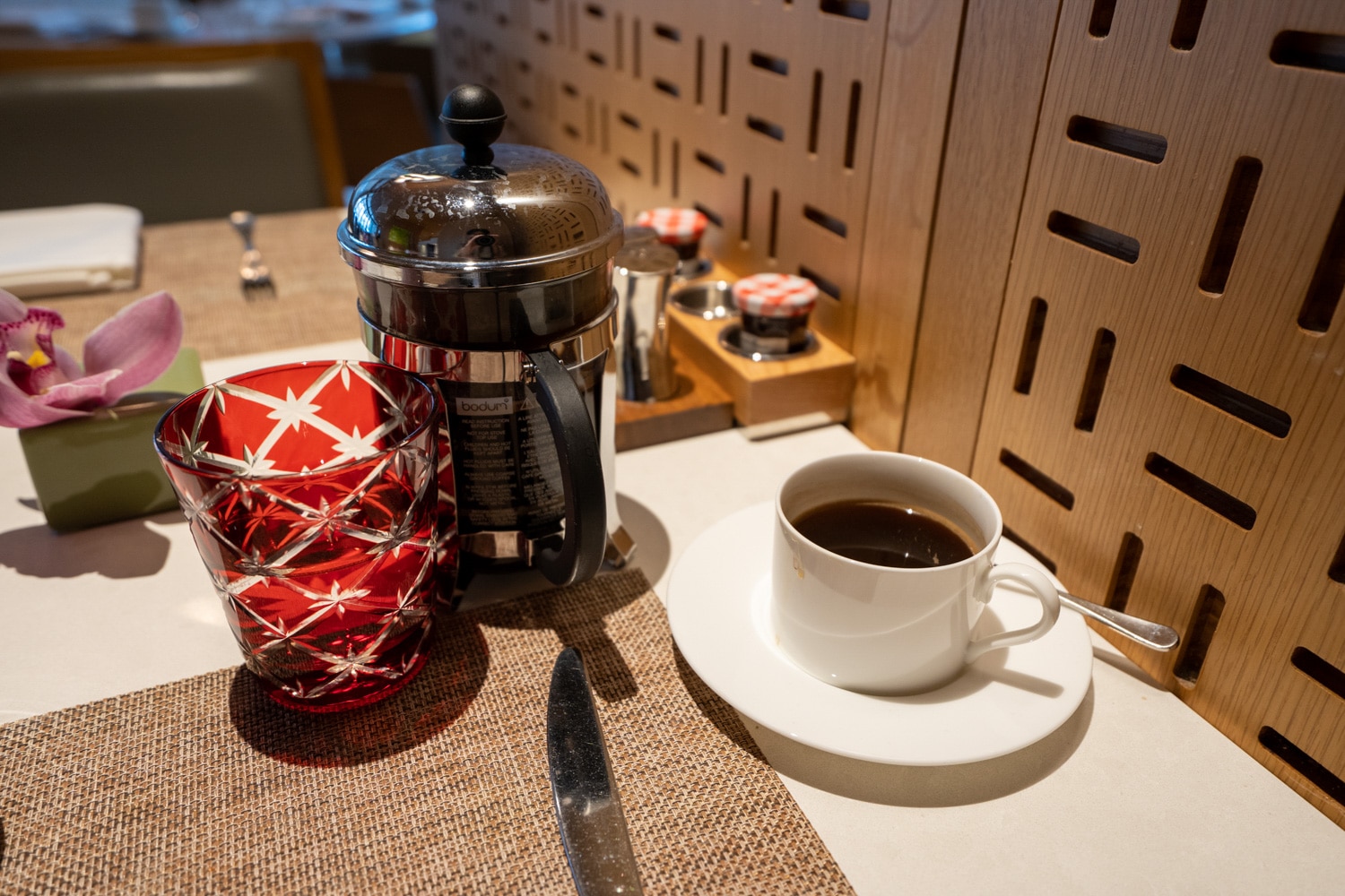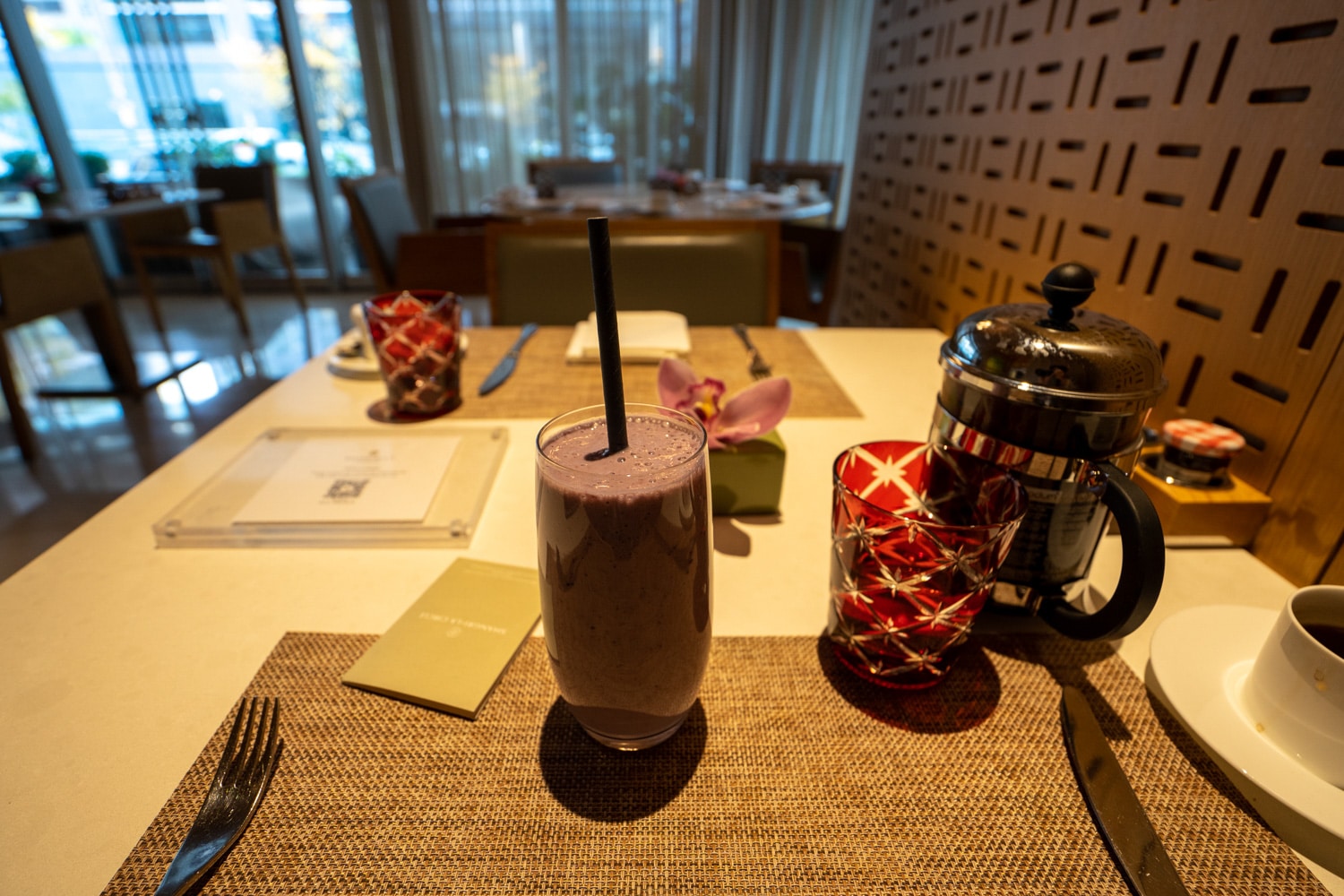 The environment is warm and sophisticated, with light pouring in from the expansive windows. It’s most definitely a peaceful spot to start off the day.