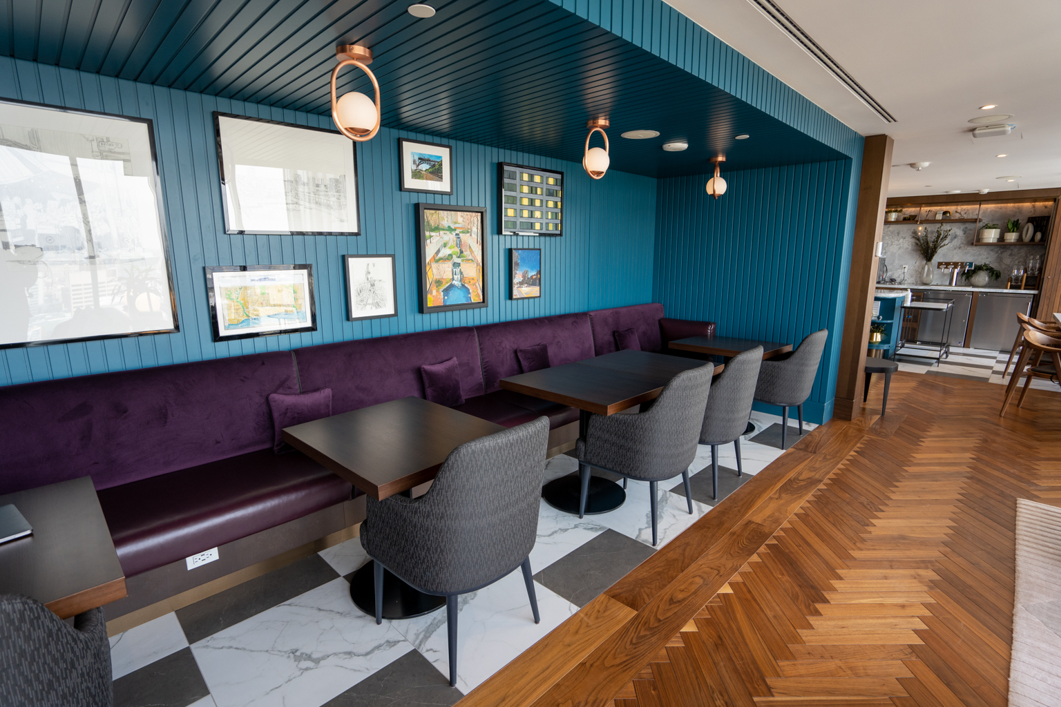 The space includes artwork and accents that shine a light on the city’s history and iconic landmarks, with locally sourced furniture and photographs drawn from the local community.