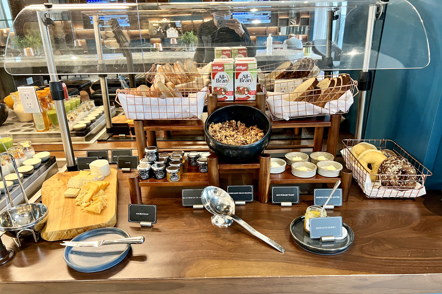The Club Lounge has a variety of sitting areas, as well as food and drink stations at both sides of the lounge with Starbucks coffee machines. Waiters and bar staff are on hand for custom-made coffee and alcoholic beverages.
