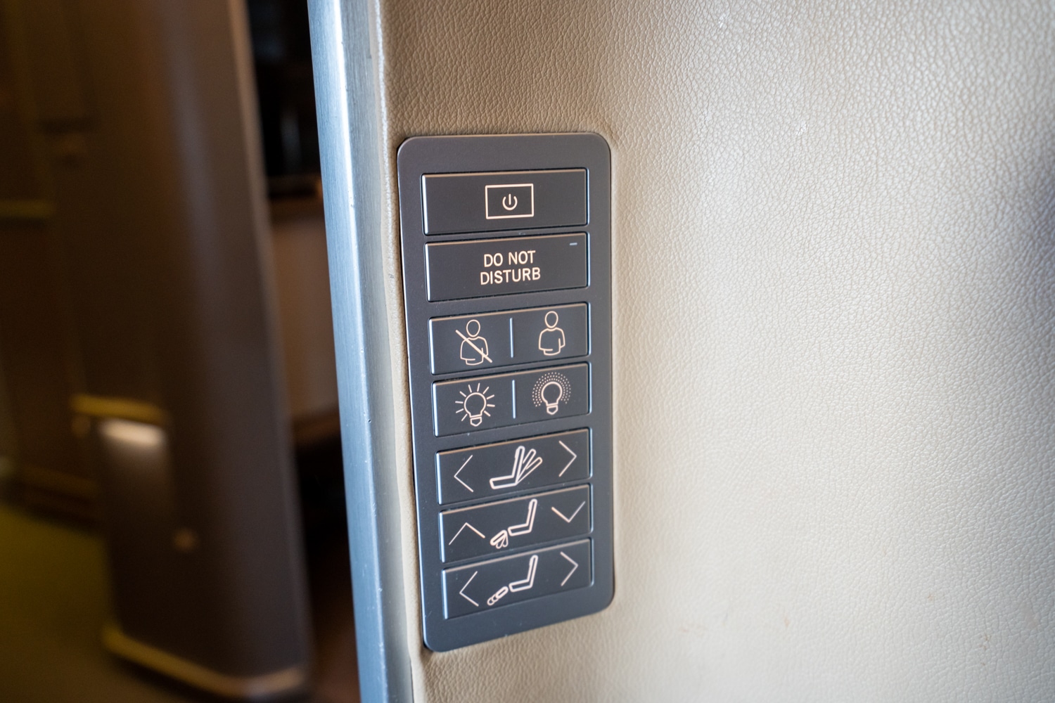 Nestled on the side of the seat shell, an array of buttons allows you to fine-tune the seat angle, footrest extension, mood lighting, and beckon the cabin crew with ease. In addition to this, there’s a Do Not Disturb activation button, should you prefer to be left alone.