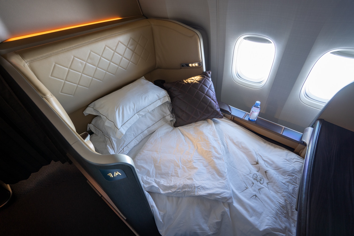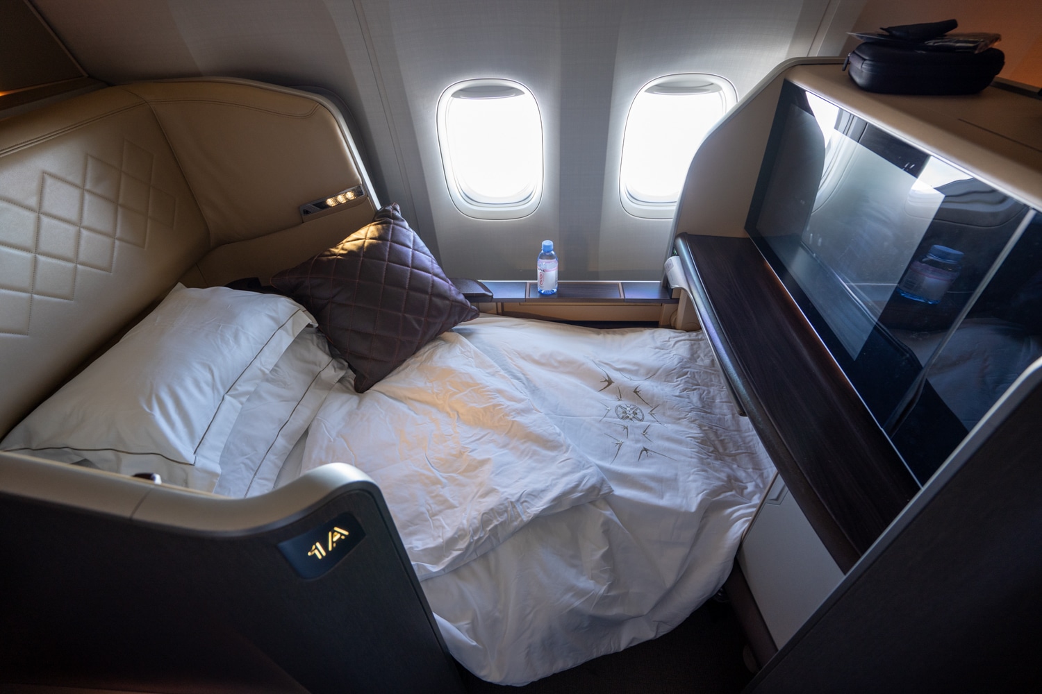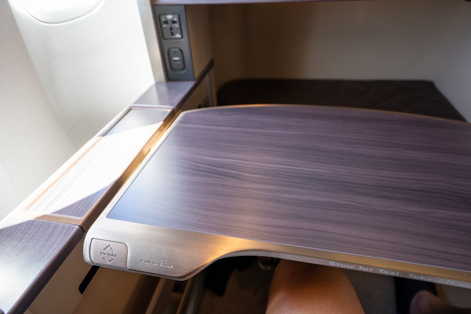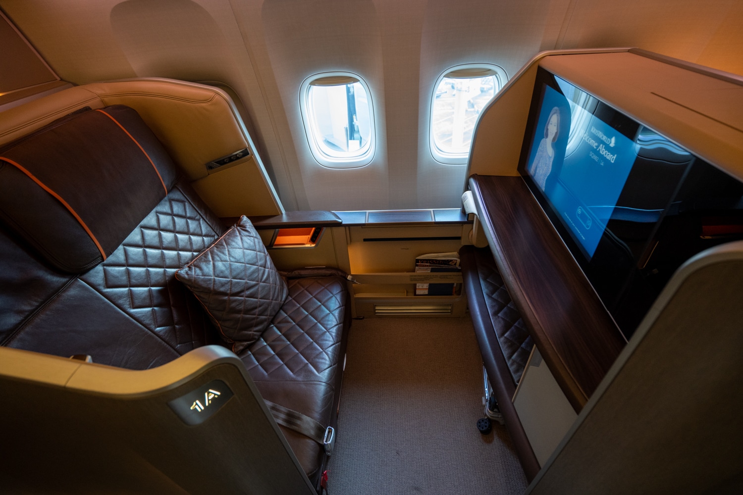 Despite no sliding doors (such as in the A380 Suites Class), there was still ample privacy thanks to the offset arrangement of the window and middle seats. Meanwhile, although the extremely generous width of the seat was slightly awkward when upright, it would definitely serve as an exceptional lie-flat sleeping surface on long-haul flights.