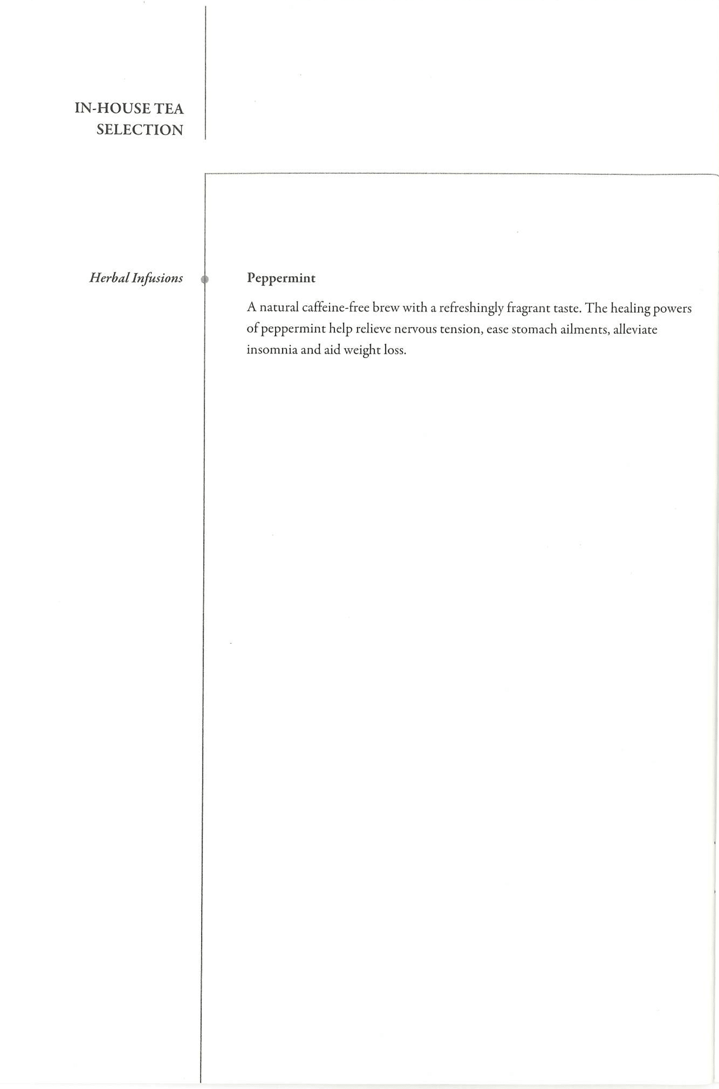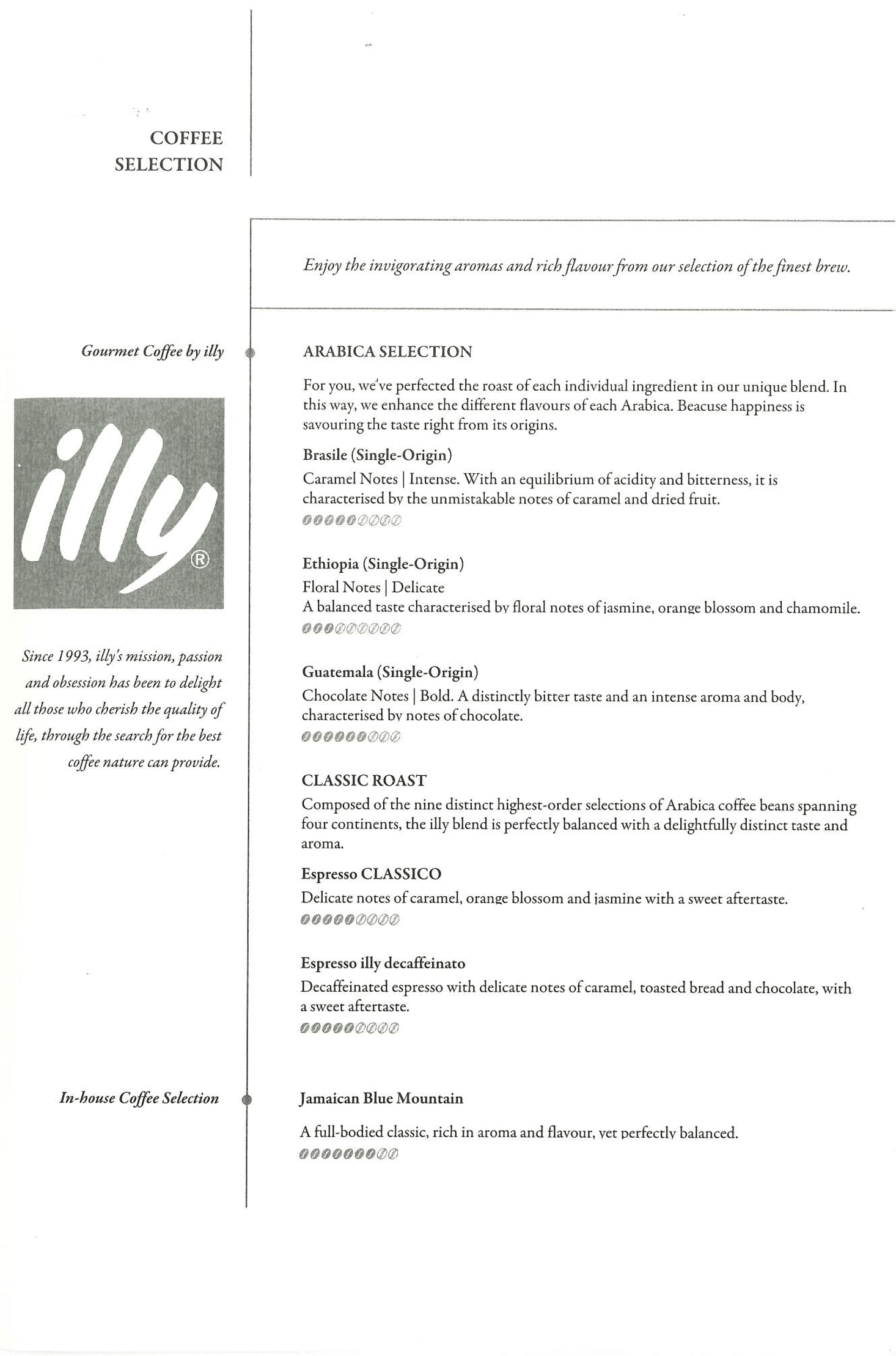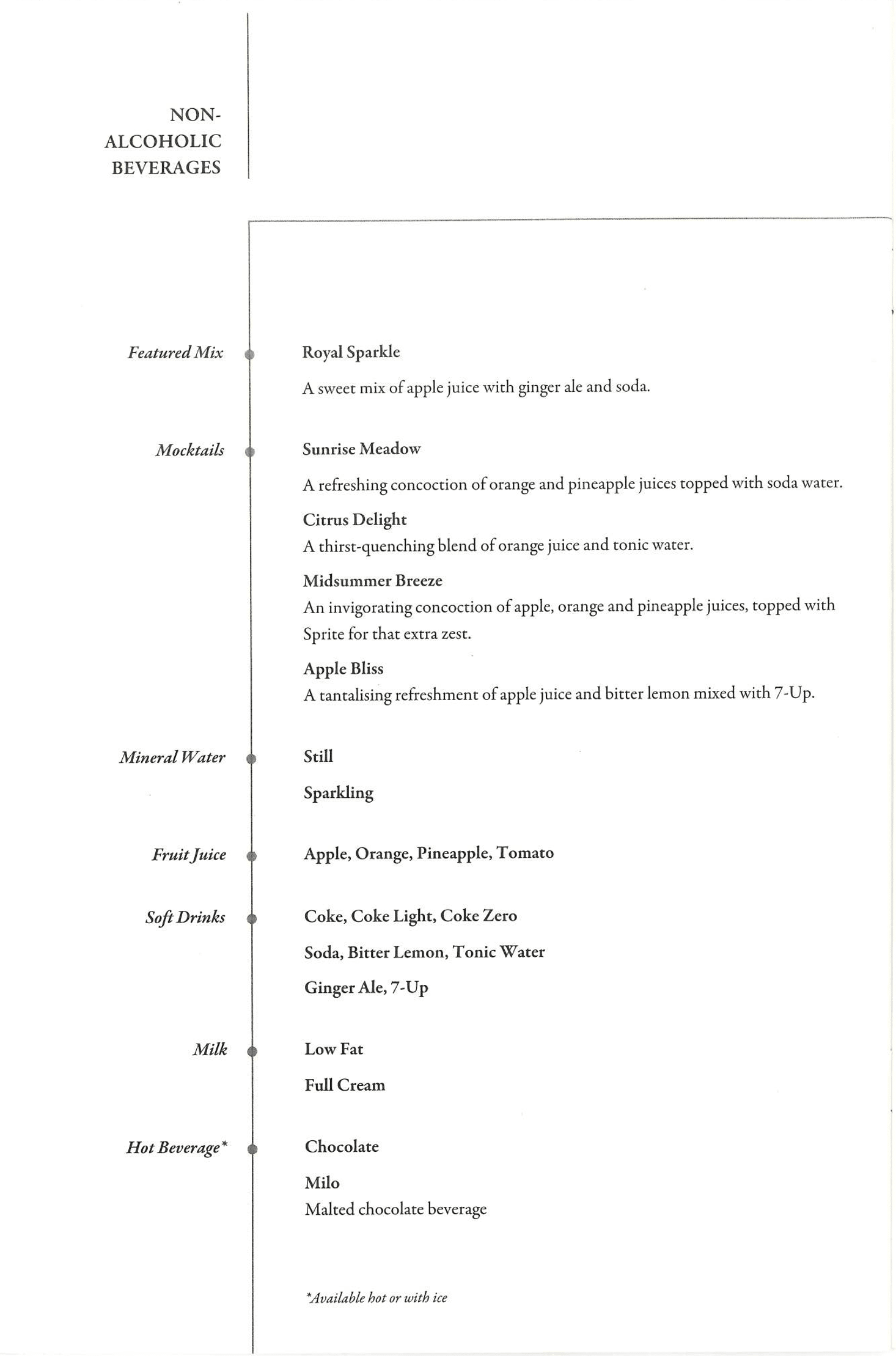The food and drinks menu read as follows: