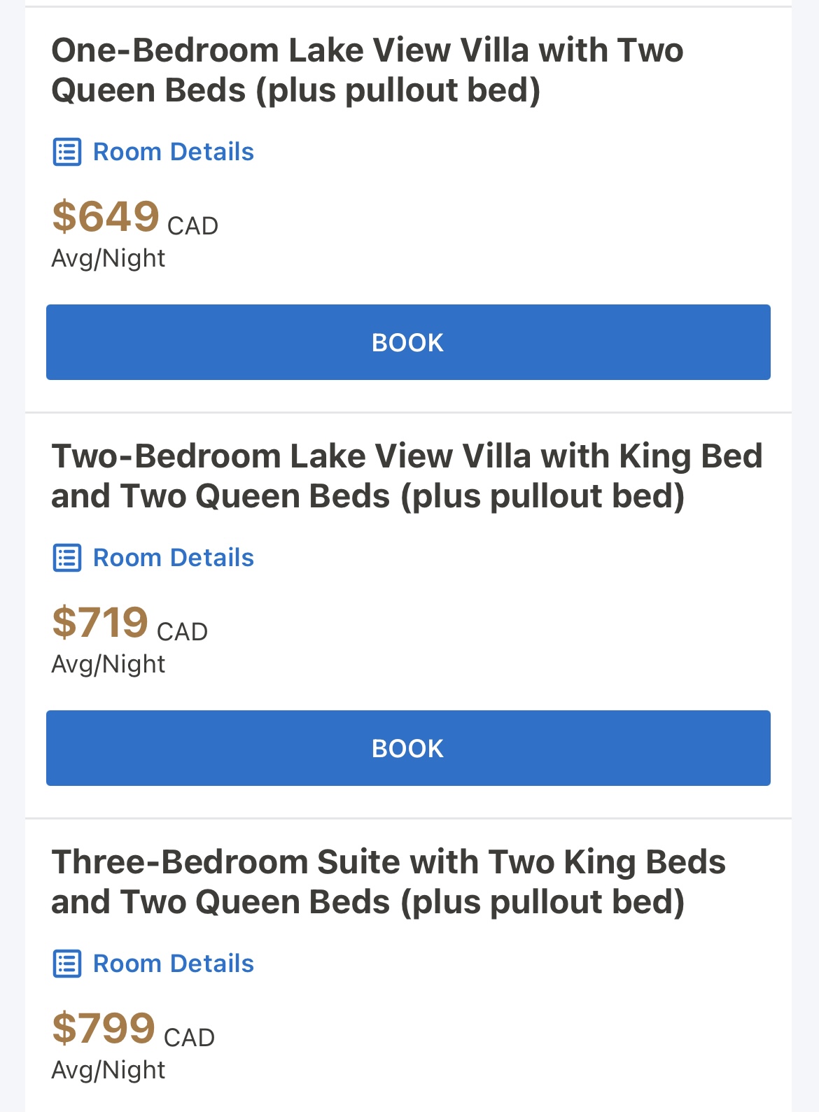 We had booked a One-Bedroom Condo, the lowest room category available. He offered to upgrade us a few categories up to a One-Bedroom Lake View Villa with Two Queen Beds and a sofa bed, which, short of a penthouse, was the best one-bedroom option they had and was booking at the time for $649. I was quite happy with the upgrade and was left with a great first impression already.