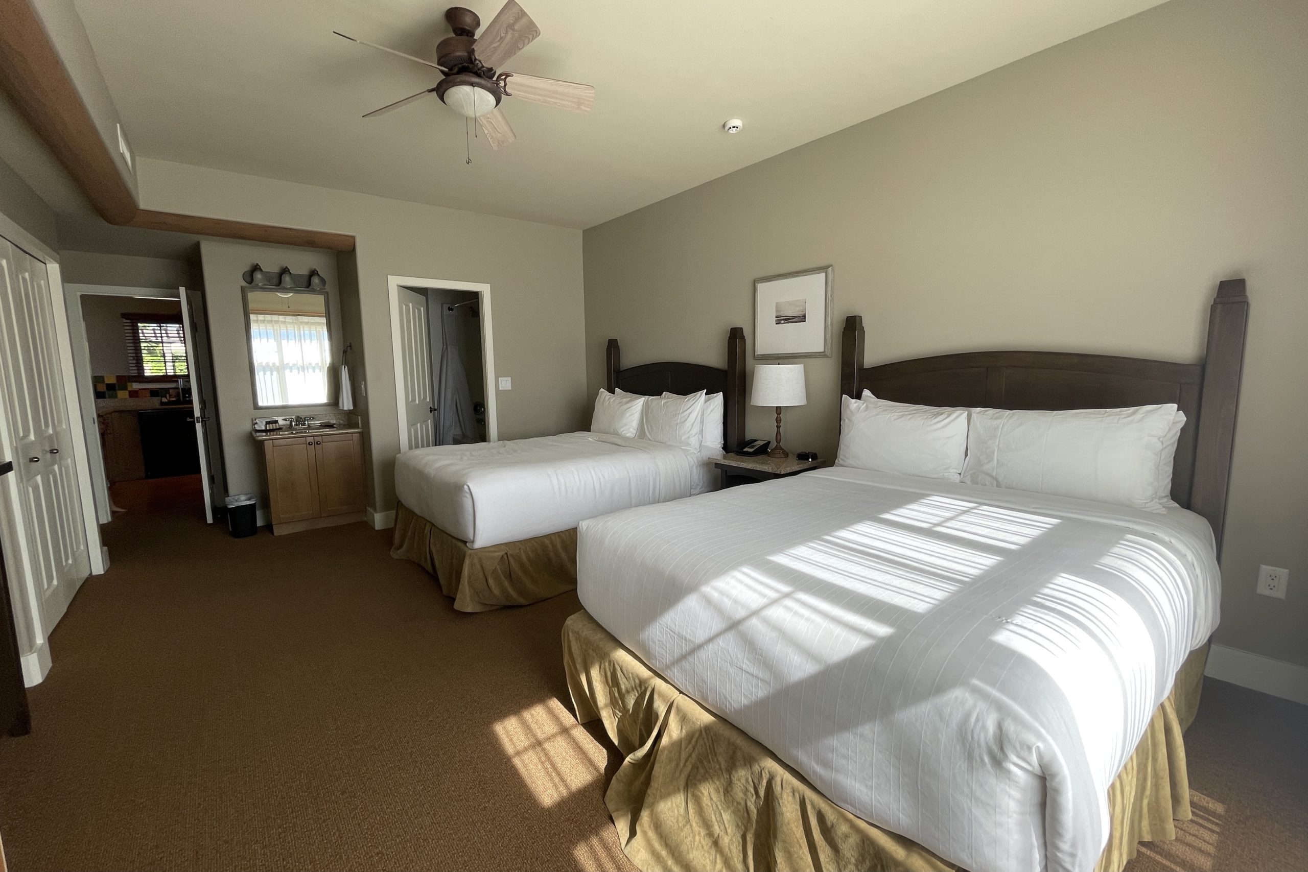 During the summer months, nightly rates can be over $400, but outside of that peak travel time, a room can be booked for under $200. I was able to book a one-bedroom condo with two queen beds and a sofa bed for $379 per night for two nights, and then applied my Free Night Award to our third night.