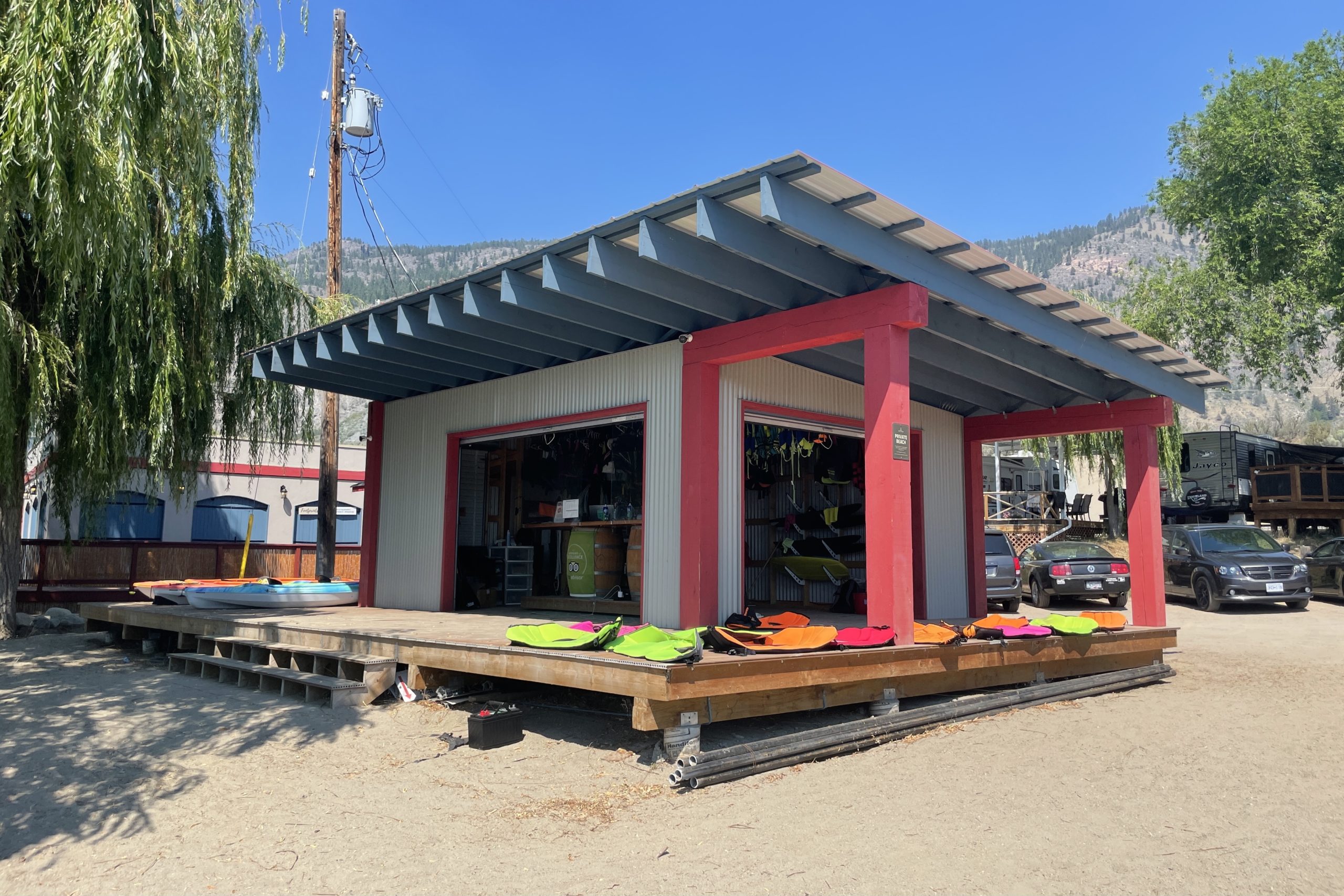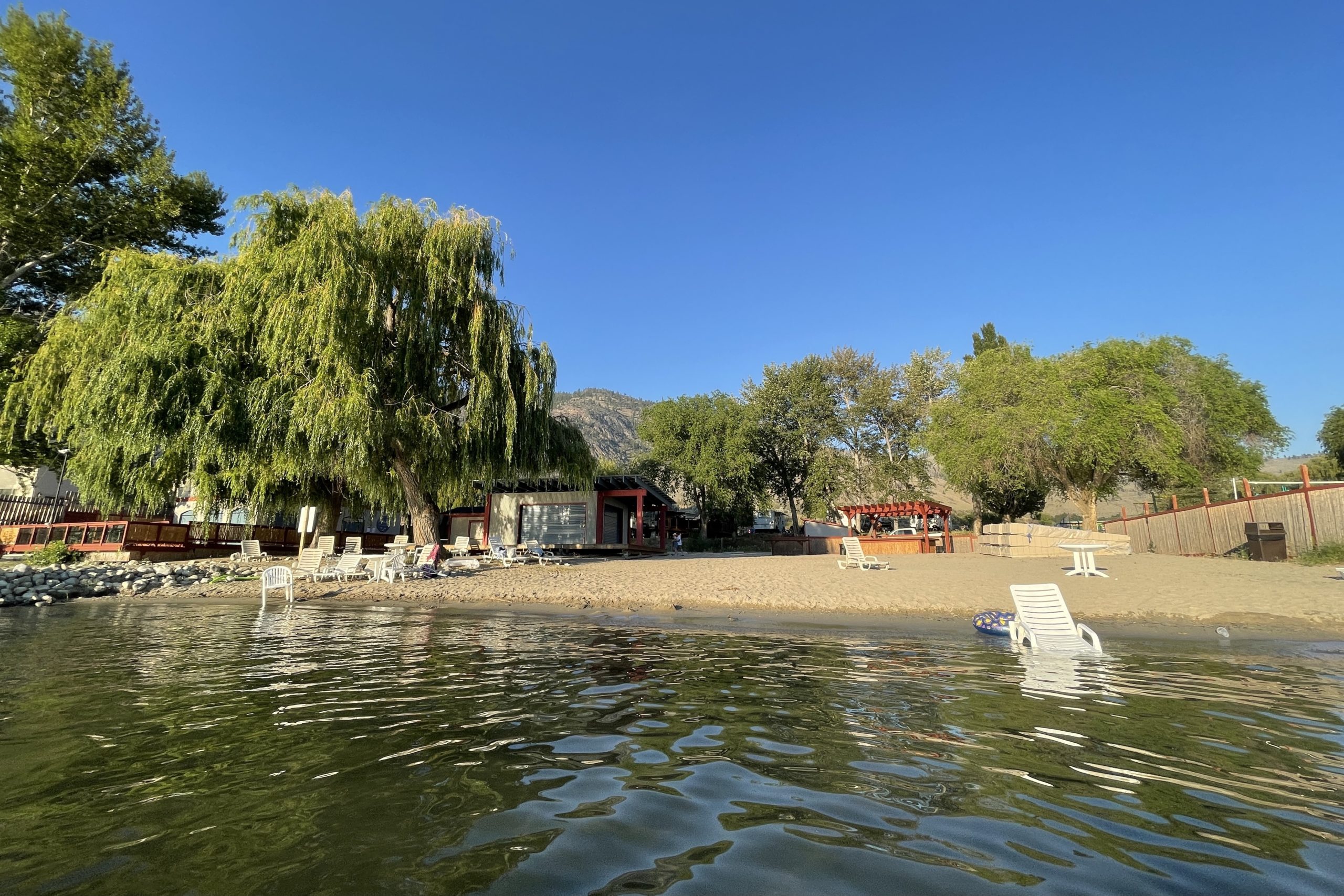Beach. The resort has a small beach on Osoyoos Lake. It is about a 10–15 minute walk to the beach from the resort along a dirt pathway. Alternatively, during the summer, the resort offers a shuttle that runs back and forth from the main building to the beach throughout the day.
