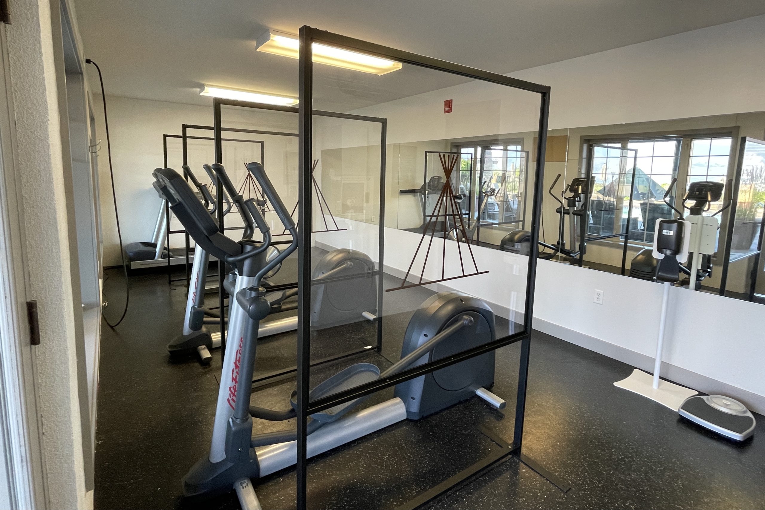 Gyms. There are two gyms, each located next to the pools. They each have a few cardio machines. The one located by the family pool is open 24 hours.