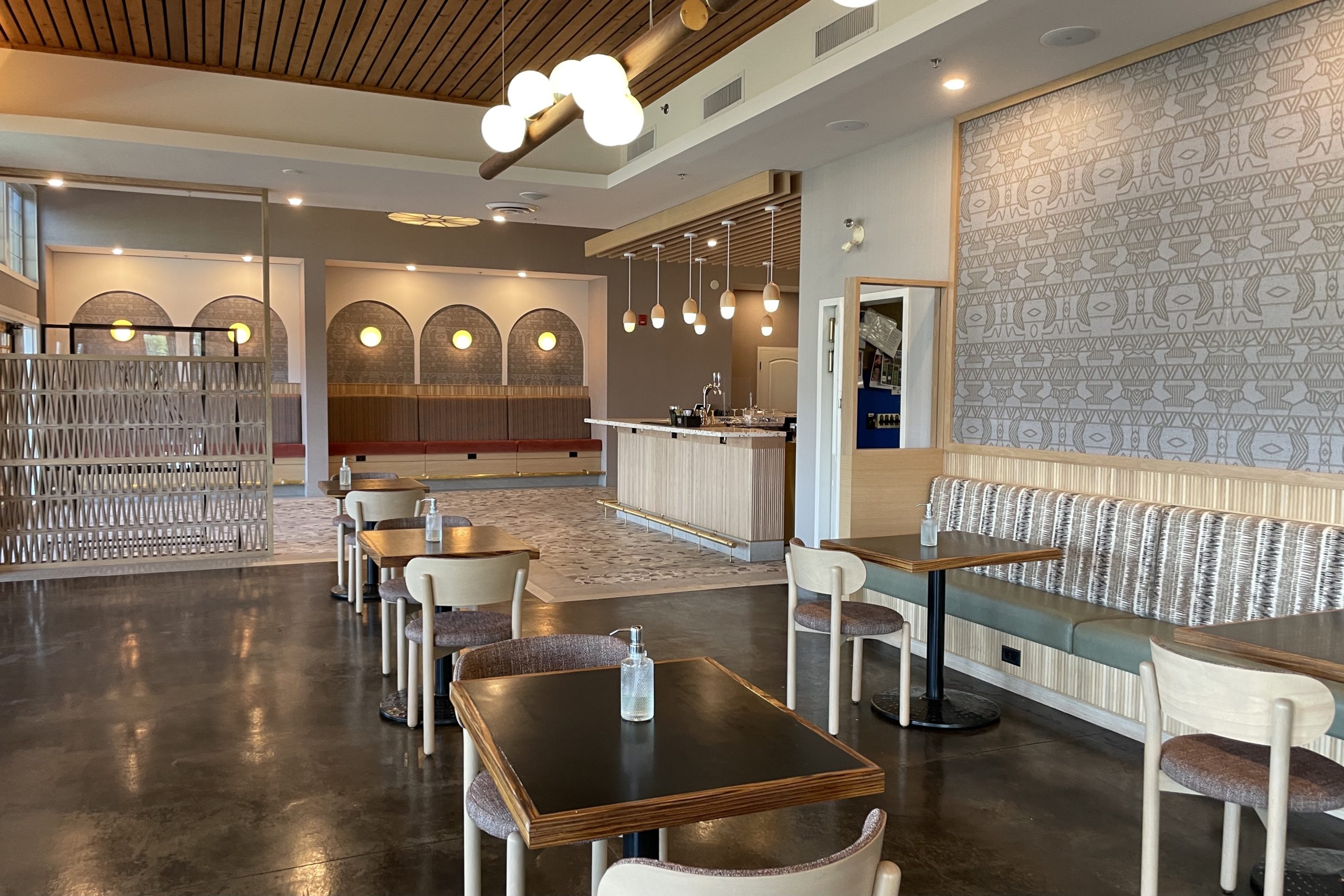 The resort’s main restaurant, The Bear, The Fish, The Root & The Berry, serves breakfast, lunch, and dinner. They have patio and indoor seating options.