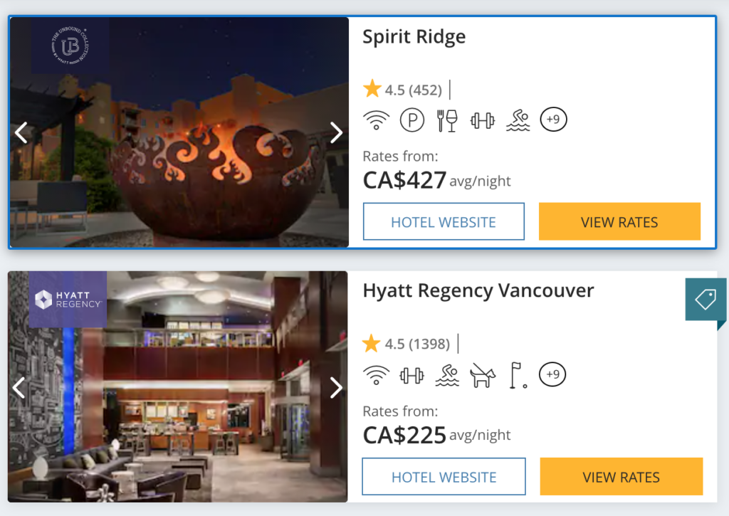 Initially, I had no plans to stay in Osoyoos. However, when I was booking our Hyatt stay in Vancouver, Spirit Ridge Resort popped up in my search as another Hyatt property in British Columbia. What really intrigued me was that despite costing over $400 per night, it was only a Category 3 hotel, which meant I could redeem my Category 1–4 Free Night Award here (another perk of my mattress run).