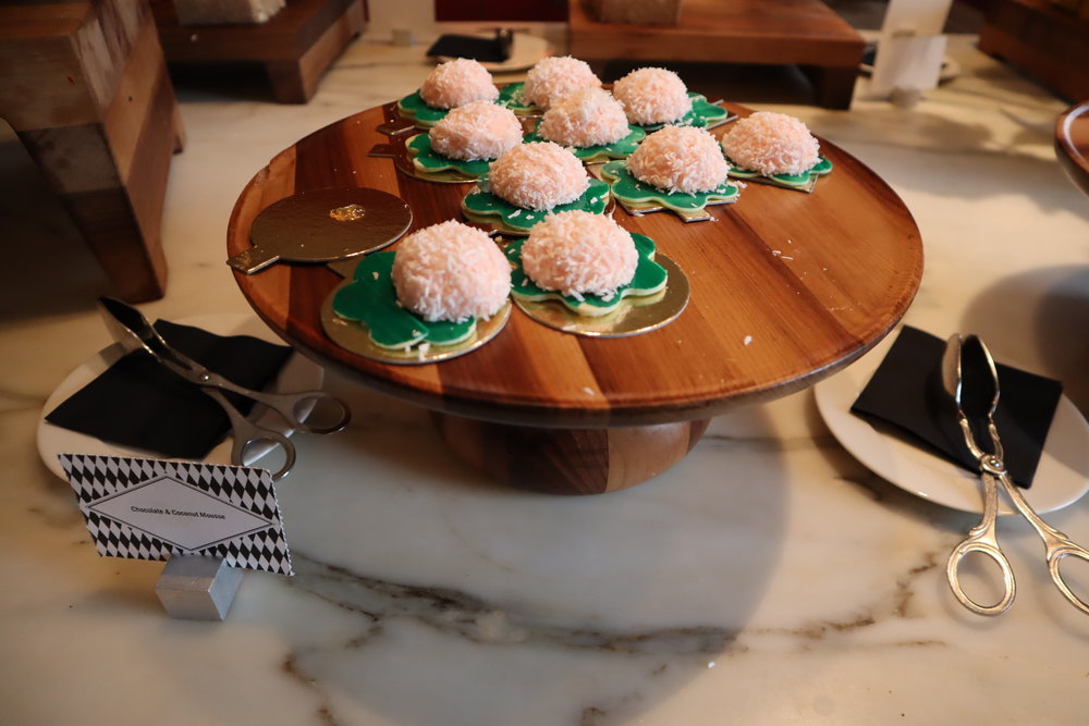 I had arrived at the hotel by noon, and got settled in to get some work done for the afternoon before heading out to dinner later that night with some friends. As I was working, a hotel associate came by to deliver my welcome gift: a beautiful and delicious dessert tray of chocolate cake, macaron, and strawberry mousse.