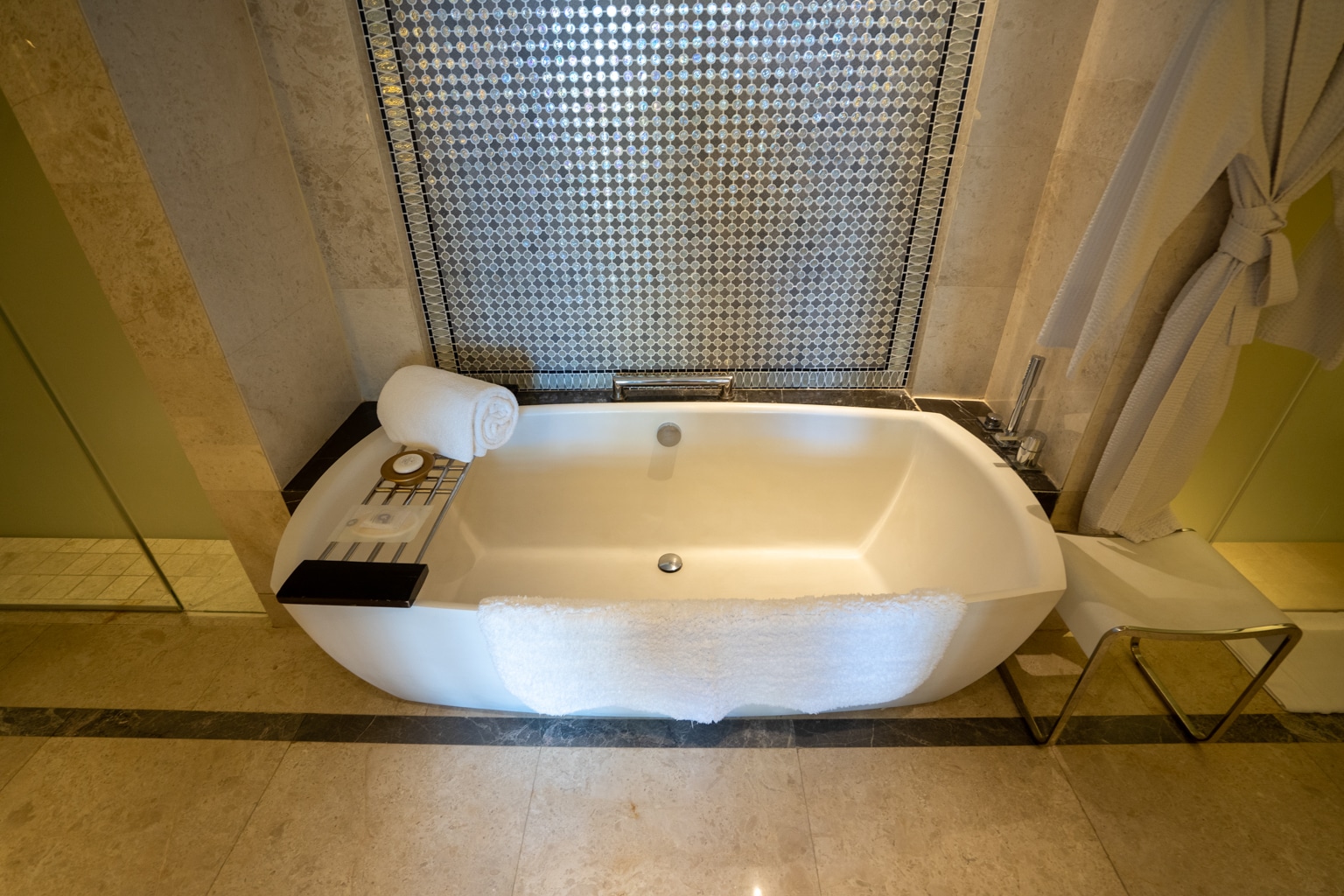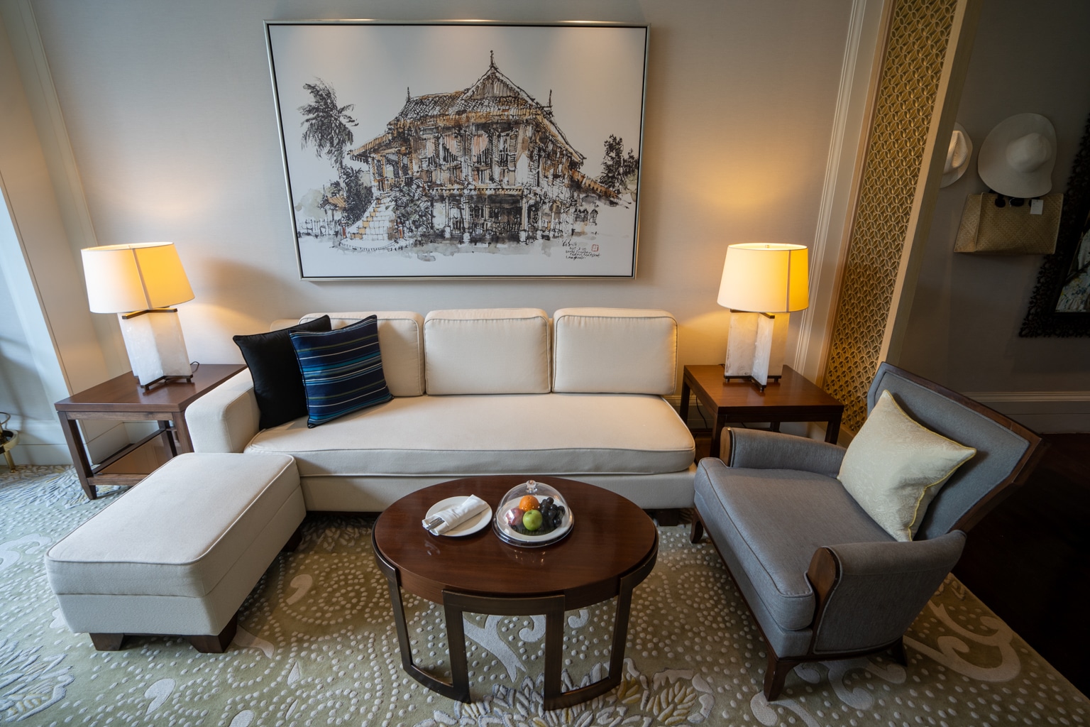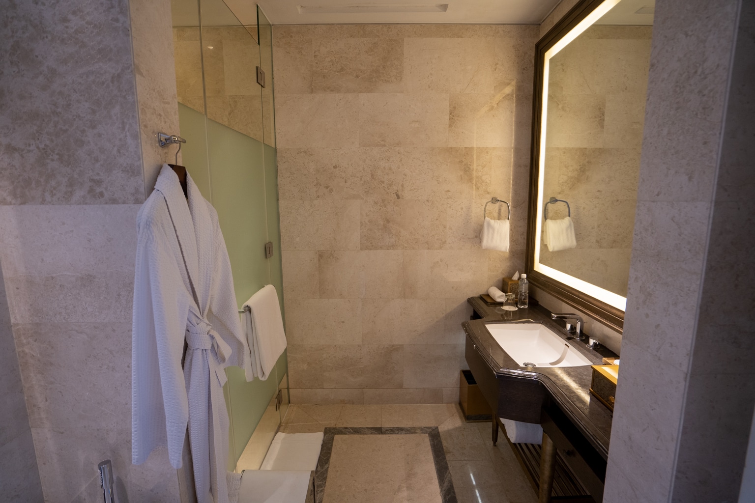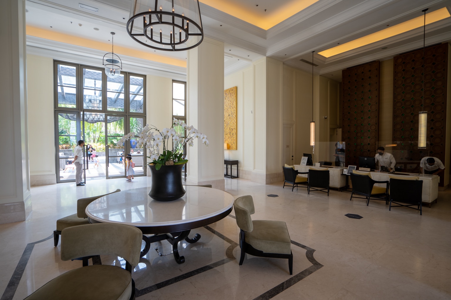 When we arrived, we were introduced to the lobby area to complete our check-in. The lobby is a grand and open space with opulent materials dotted throughout, such as ivory-coloured marble floors, rich timber, and metallic accents.