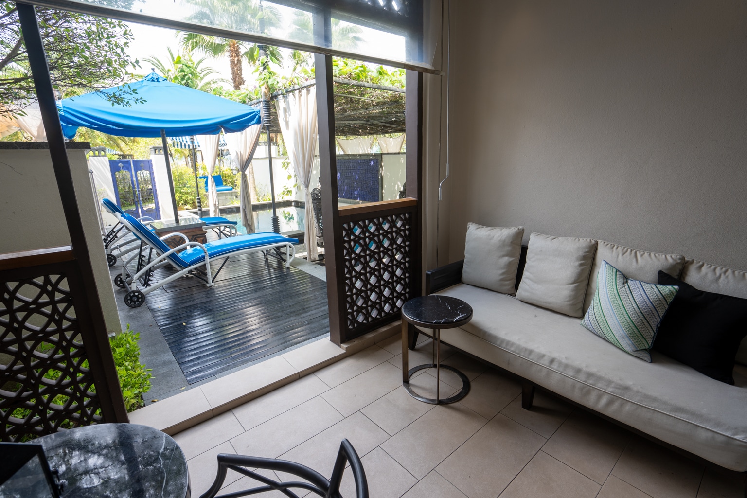 The outdoor section also had a gate that led directly out to the beach area, which is another benefit of these ground-floor St. Regis Pool Suites.