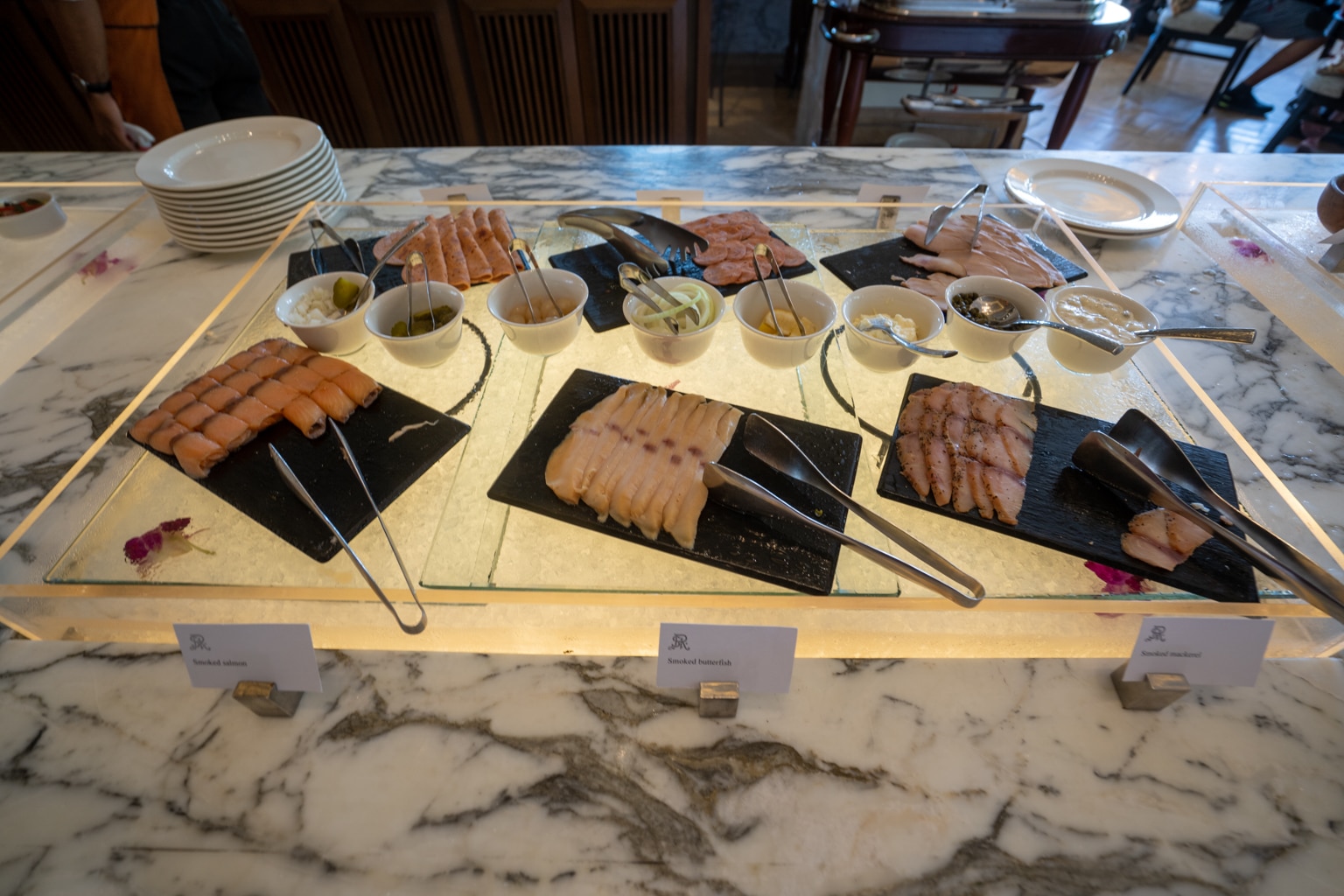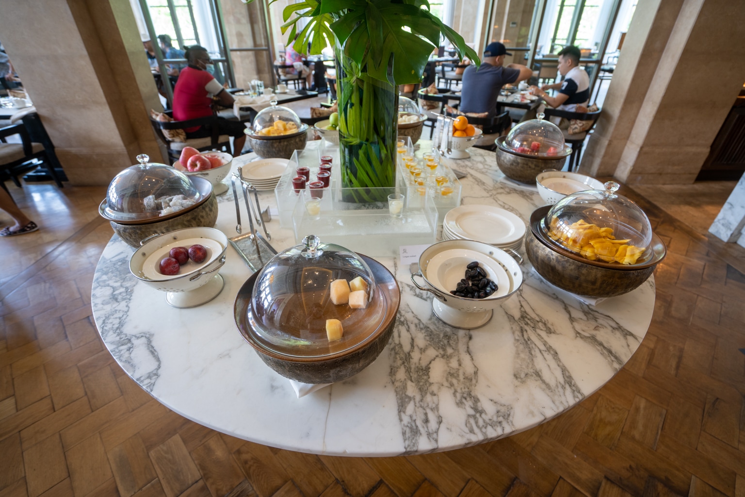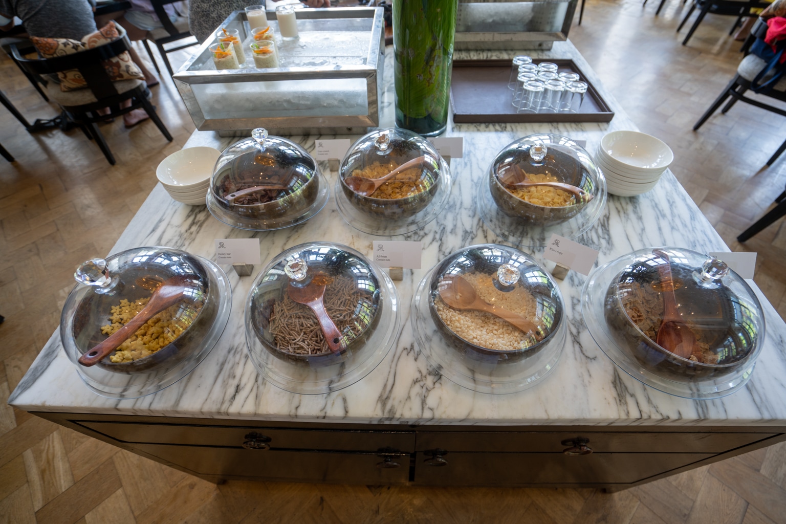 Breakfast is served in the hotel’s L’Orangerie restaurant from 7–11am, offering an extensive buffet spread plus an à la carte menu. For our stay, breakfast was covered as part of our Marriott Bonvoy Platinum Elite benefits.