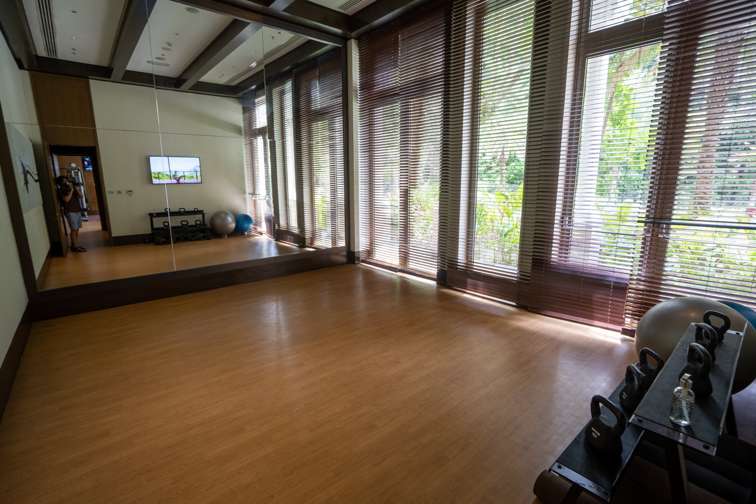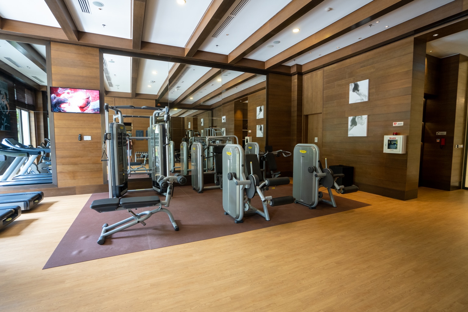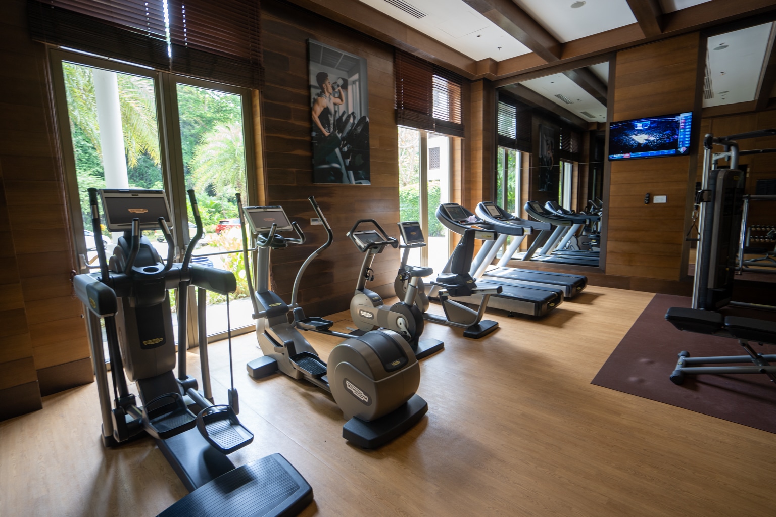 Meanwhile, the fitness centre is open 24 hours and is located on the ground floor of the resort. The space is dimly illuminated but modern and spacious, with a separate aerobics room.