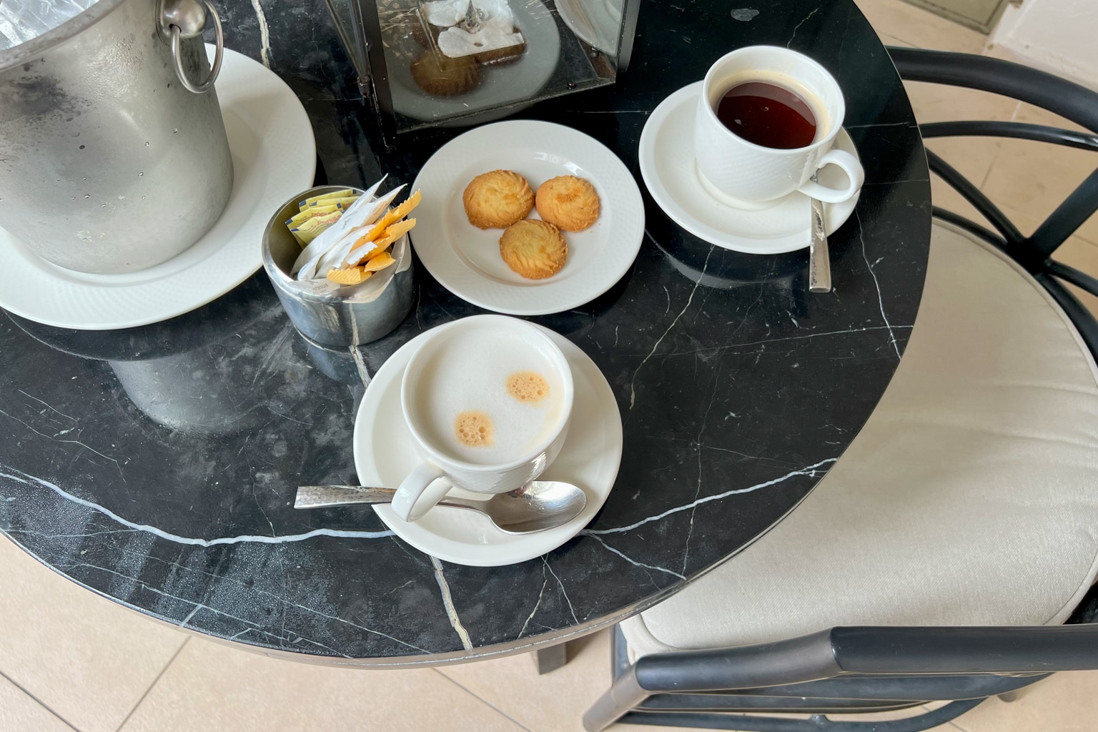 As part of St. Regis’s signature butler service at this resort, we were able to order complimentary coffee and tea to the room 24/7, including cappuccinos. Butler service also includes complimentary pressing for two garments per guest per night.