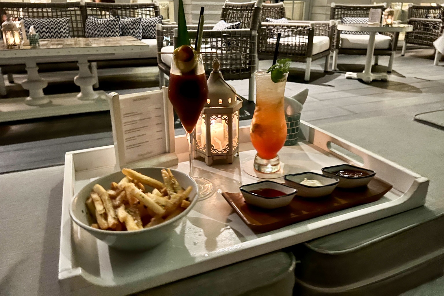 We didn’t eat dinner here, although we went out on the deck for drinks both nights at sunset, which is certainly something I’d highly recommend if you’re staying at this resort.