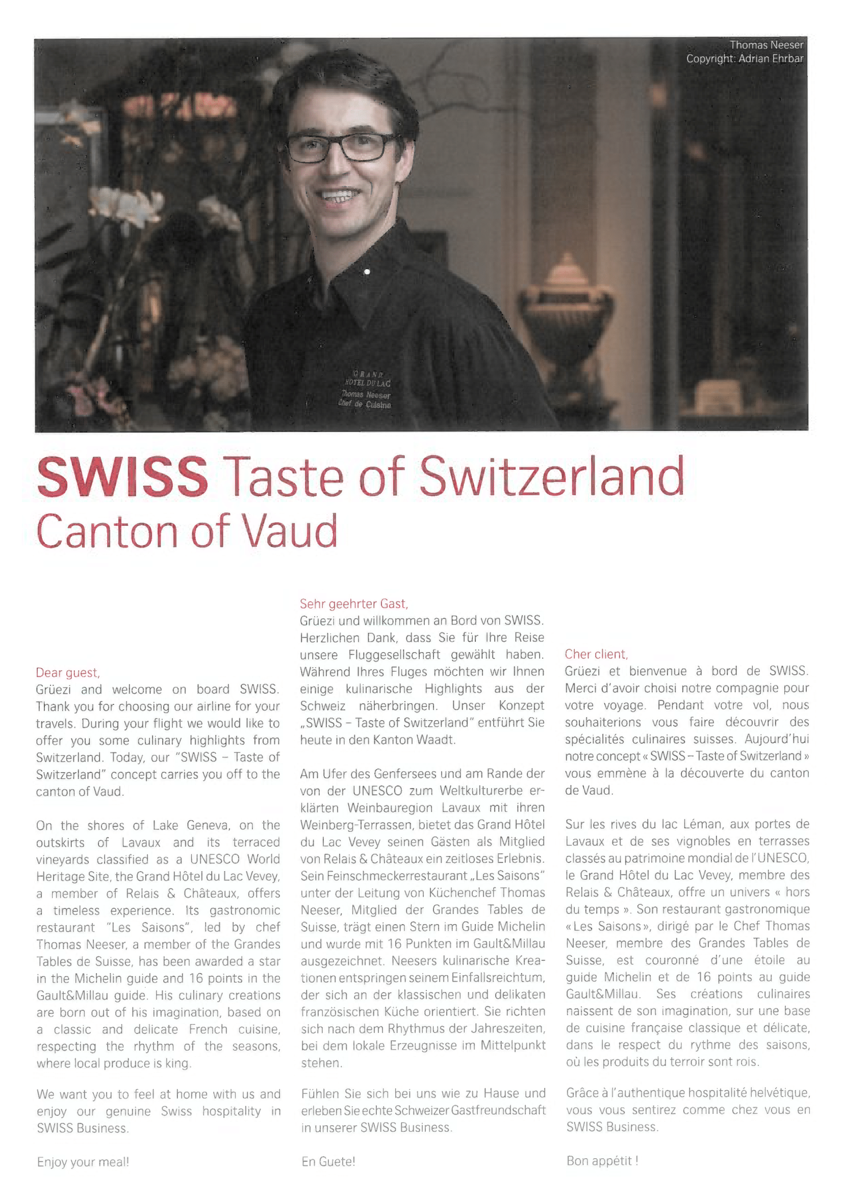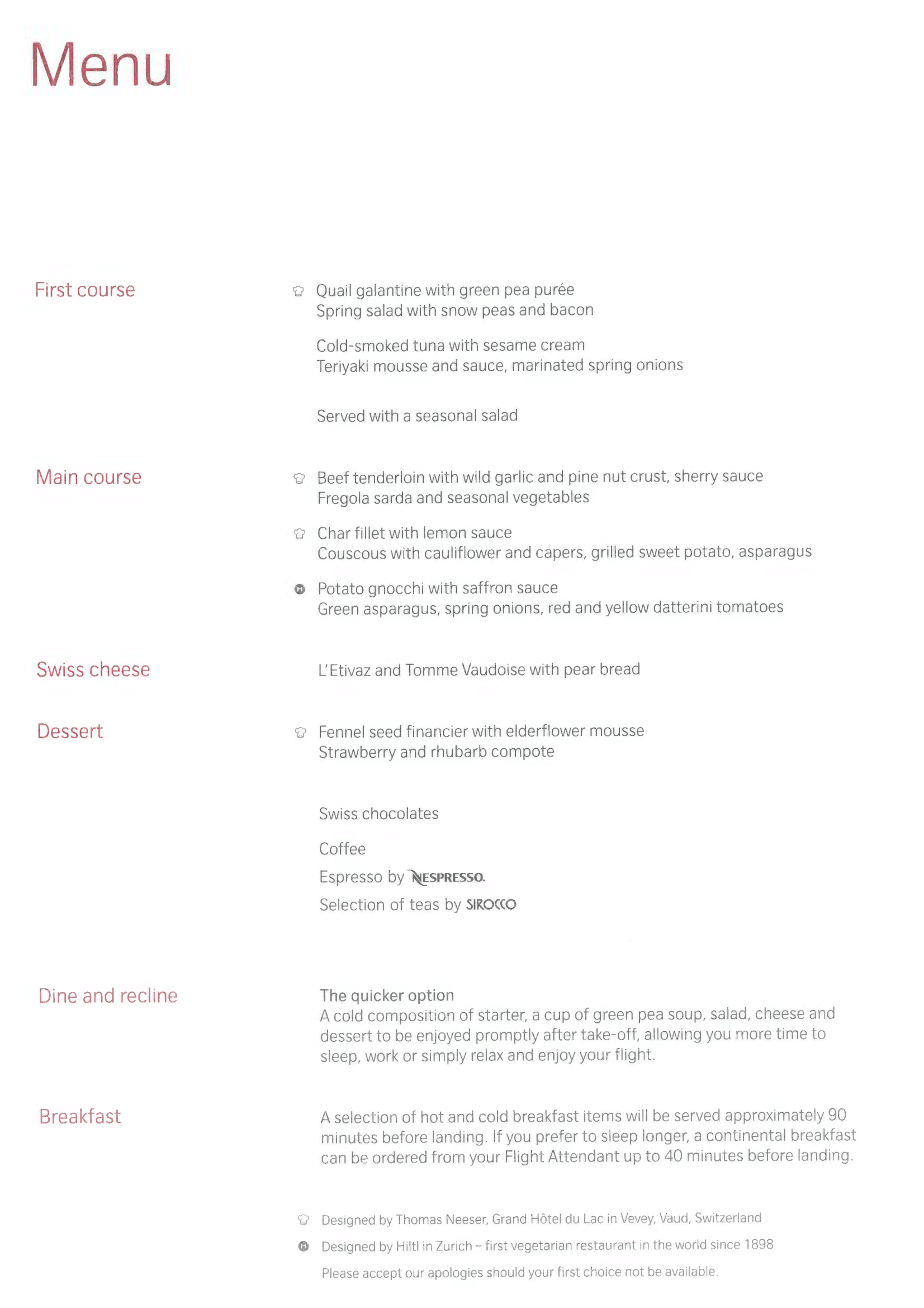 During this time, I perused the business class menu. The menu included some light reading material about Switzerland and its gastronomy as well, which I always appreciate.