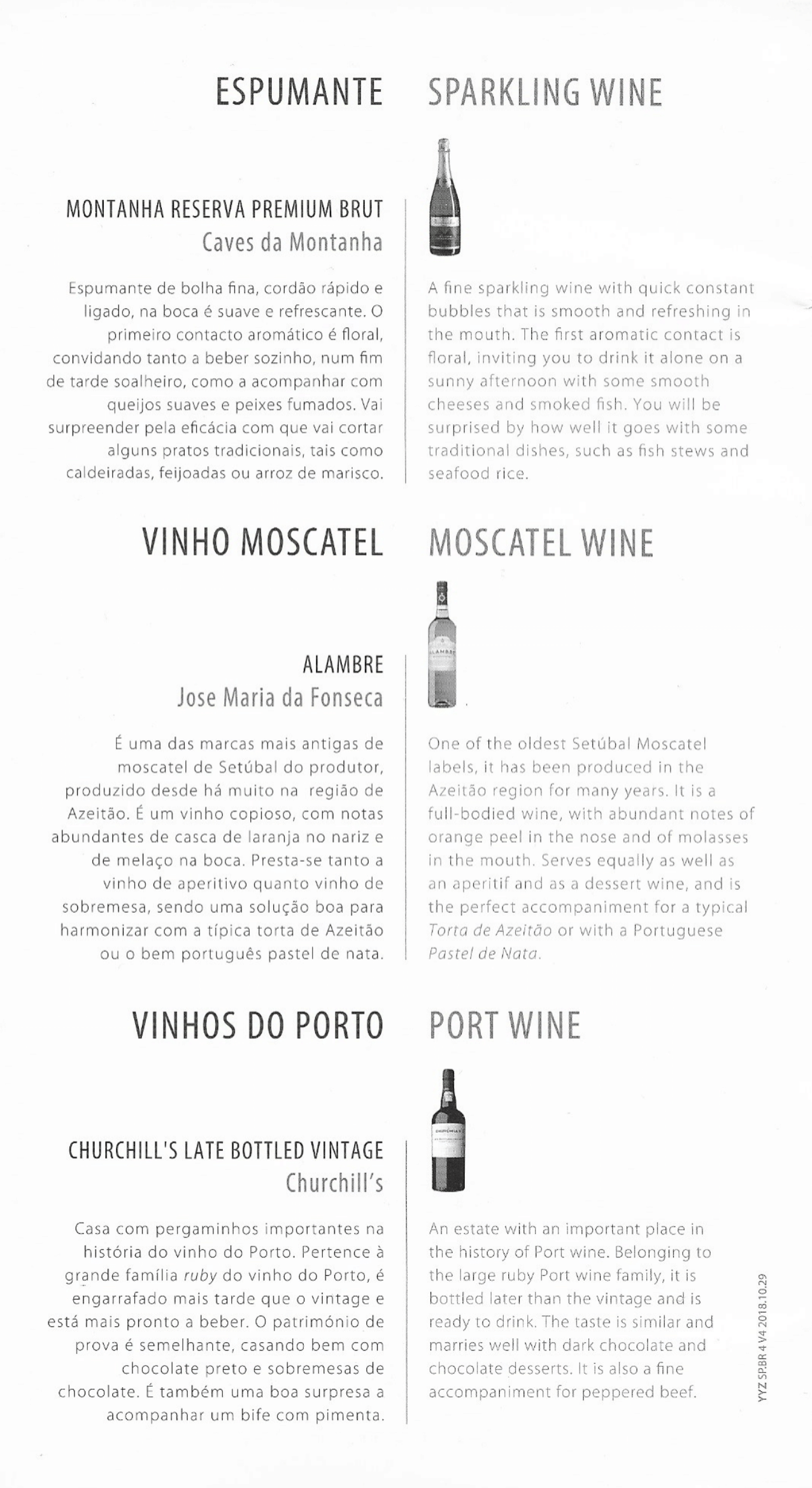 There was the business class menu and wine list, which rather curiously came in four languages: Portuguese, English, Spanish, and French. I browsed through and placed my order with the crew member when she came around again.