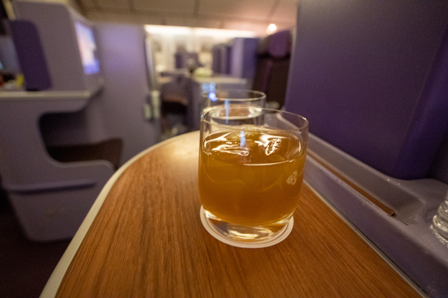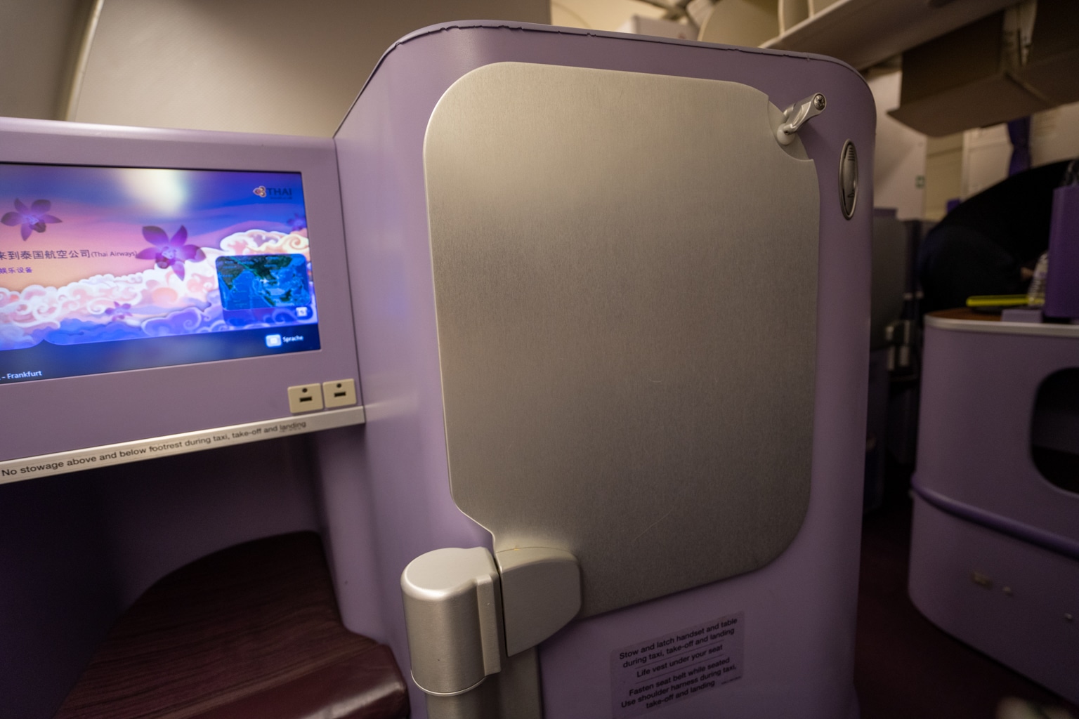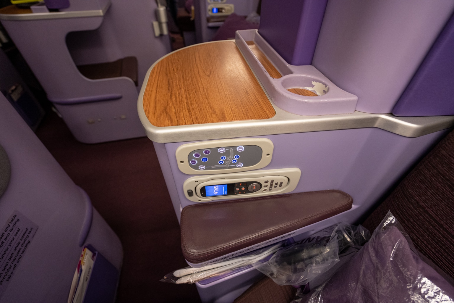 This was my first time flying long-haul with Thai Airways in business class, although I had flown the airline once before on a regional short-haul flight. I was familiar with the cabin from last time around, but it was nice to see the distinct purple cabin once again.