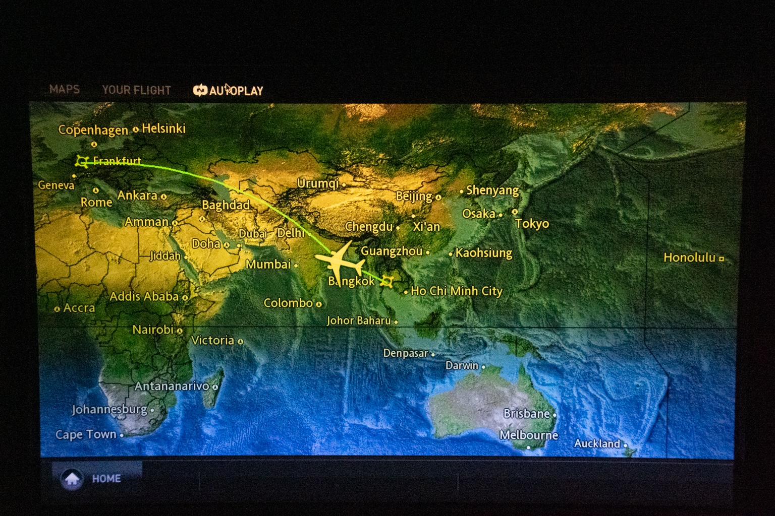 I slept quite comfortably for about six hours before waking up as we were flying over Turkey, with just two hours of the flight left to go.