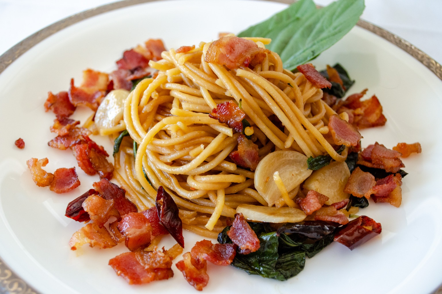 However, I ended up being delighted with my choice, as the spaghetti was surprisingly delicious. The pasta was close to al dente and was perfectly seasoned, and the bacon added some smoke and salt to the dish, which paired well with the dry heat of the chili peppers.