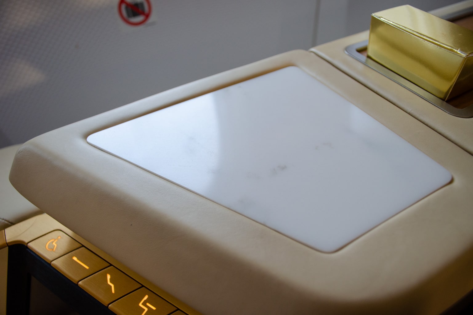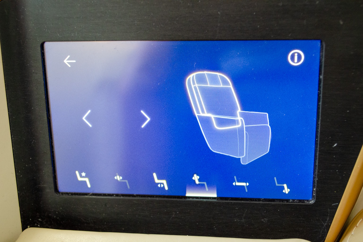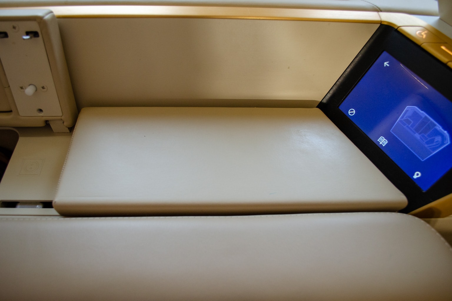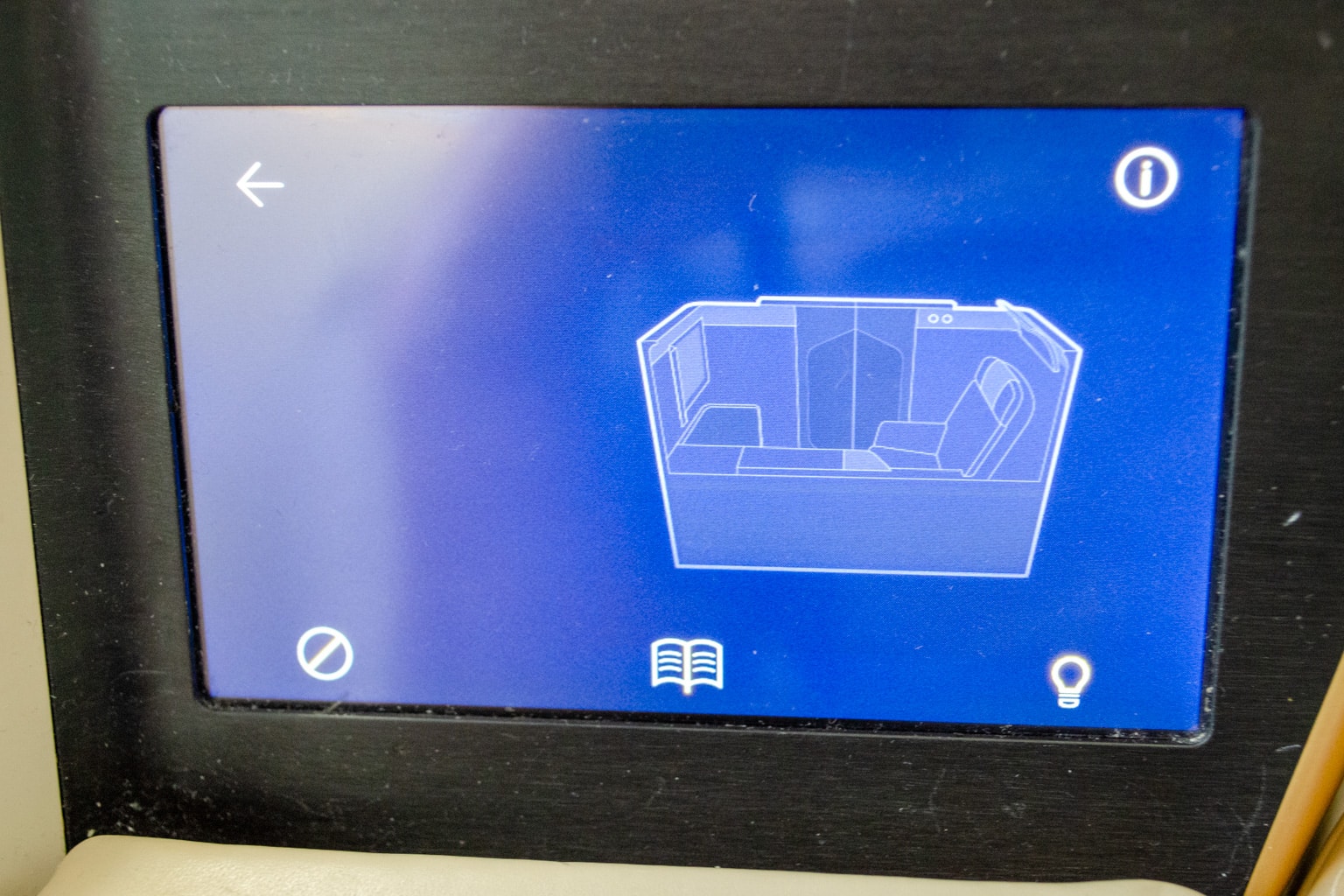 Just below here is a touchscreen, which you can use to raise or lower the partition, call a flight attendant, or turn on the reading light.