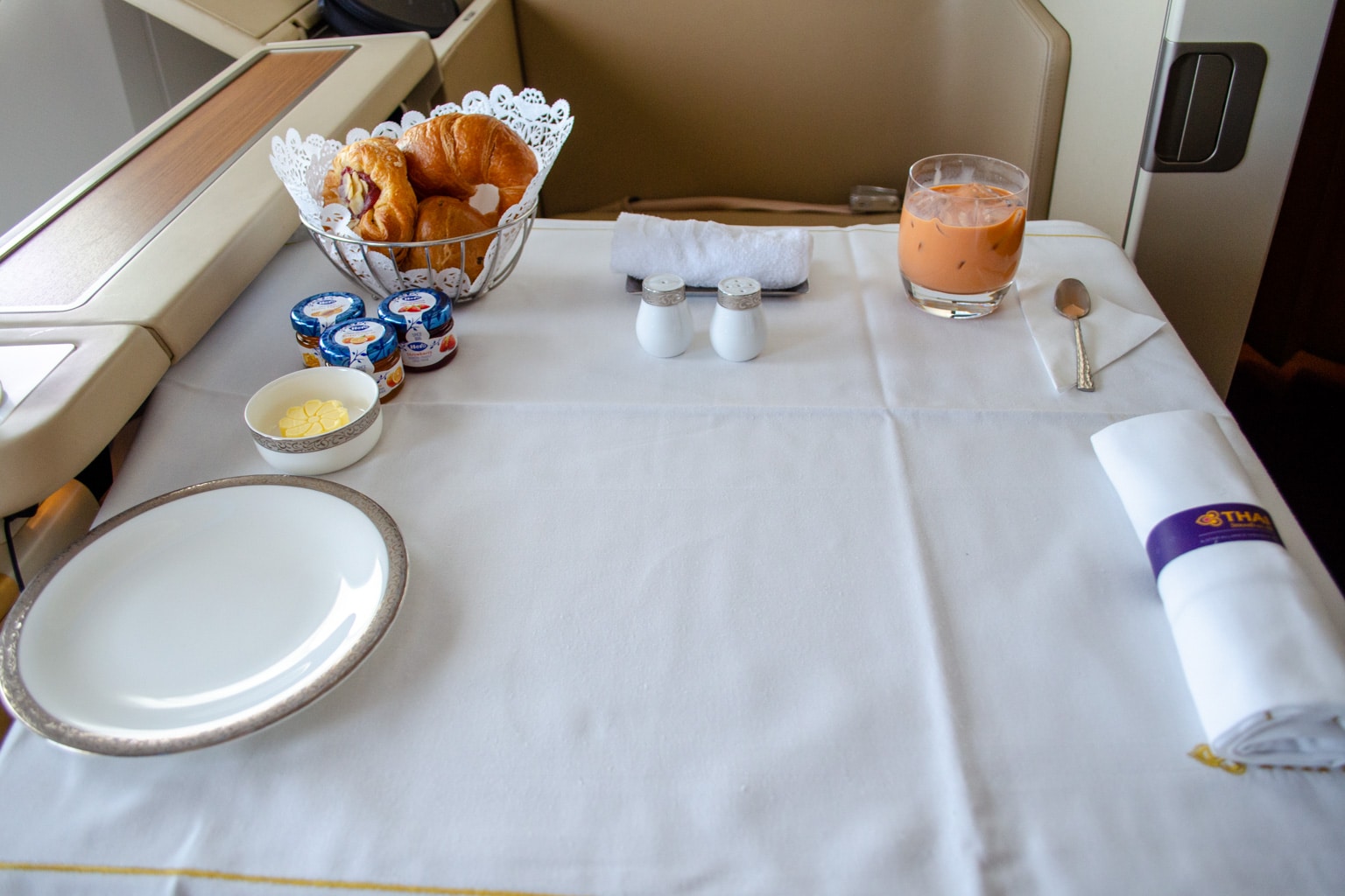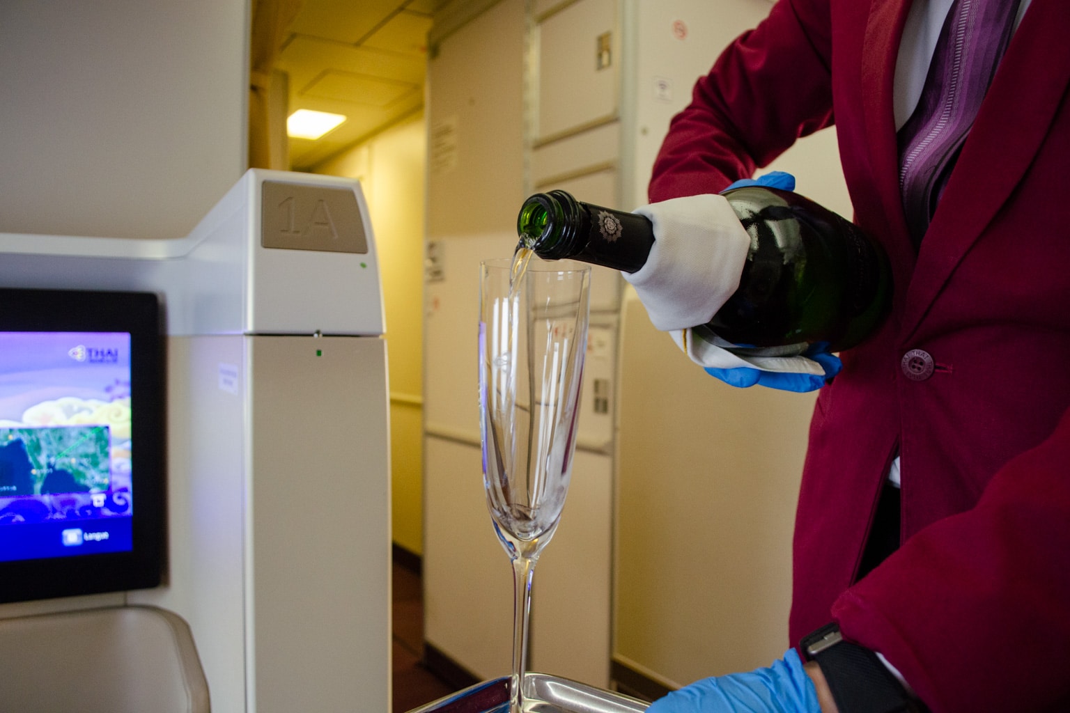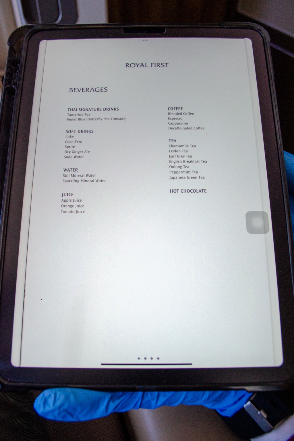 I was also provided with an iPad listing the beverage menu, but I was asked not to take a picture of the Champagne selection as it was out of date. Thai Airways no longer serves Dom Pérignon on flights, ever since Emirates secured the exclusive right to serve it onboard through 2024.