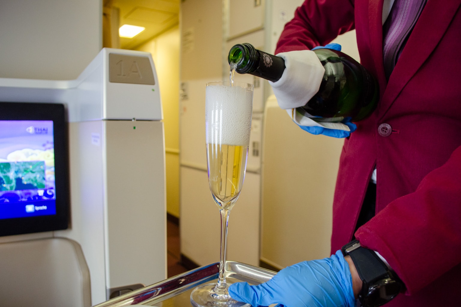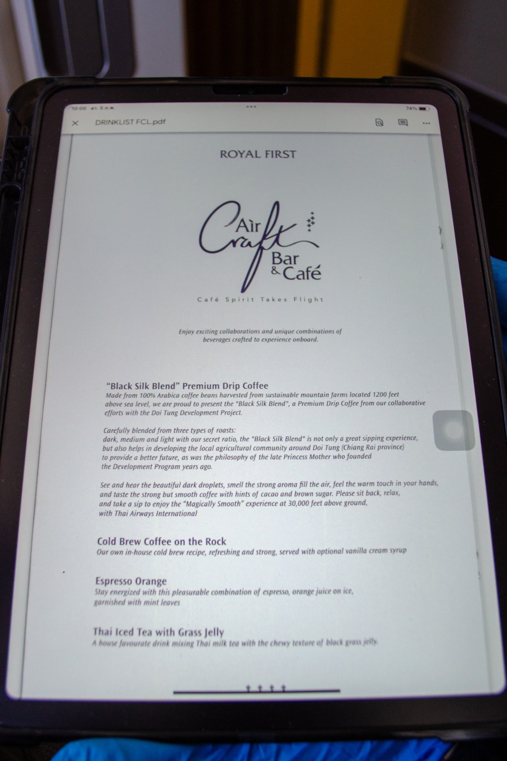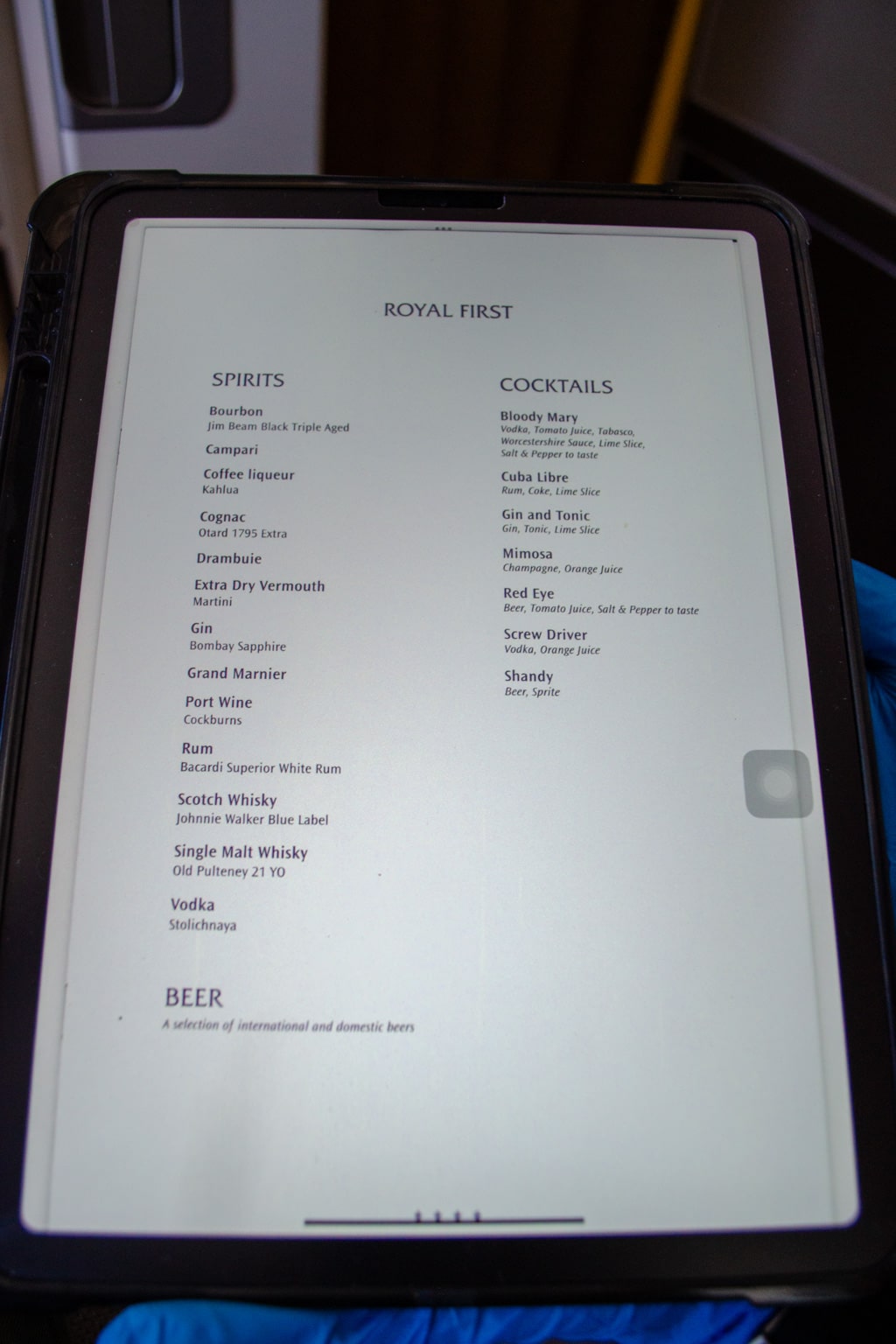 I was also provided with an iPad listing the beverage menu, but I was asked not to take a picture of the Champagne selection as it was out of date. Thai Airways no longer serves Dom Pérignon on flights, ever since Emirates secured the exclusive right to serve it onboard through 2024.