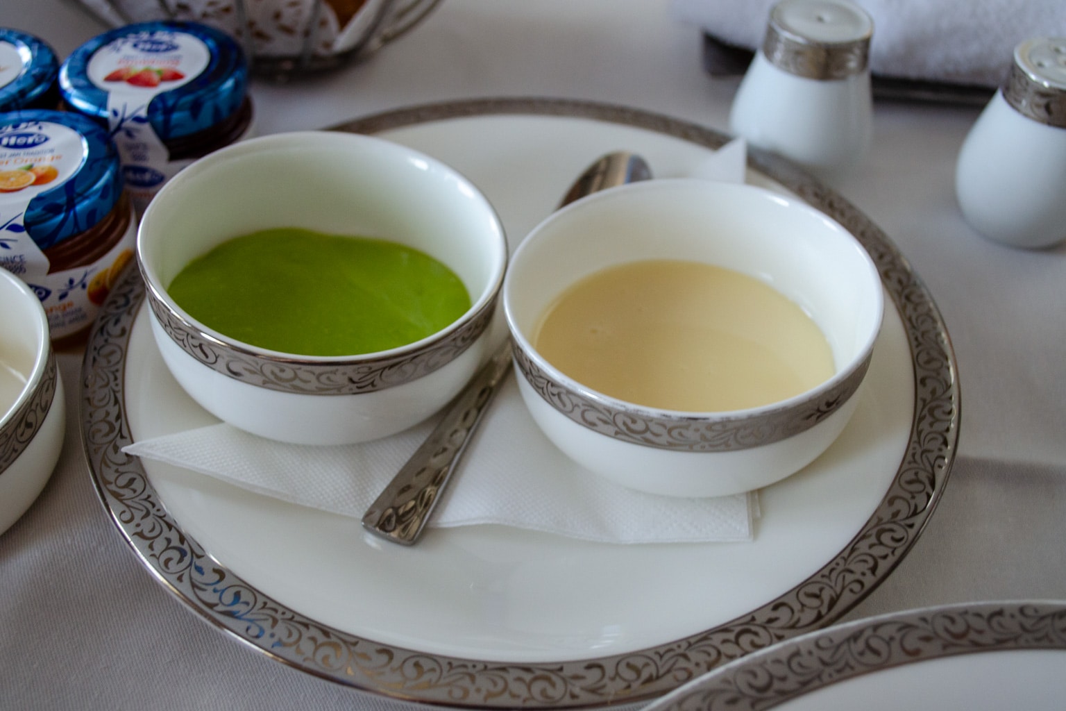 Surely, I could have asked the flight attendant about this, but I wound up polishing off the dishes without further ado.
