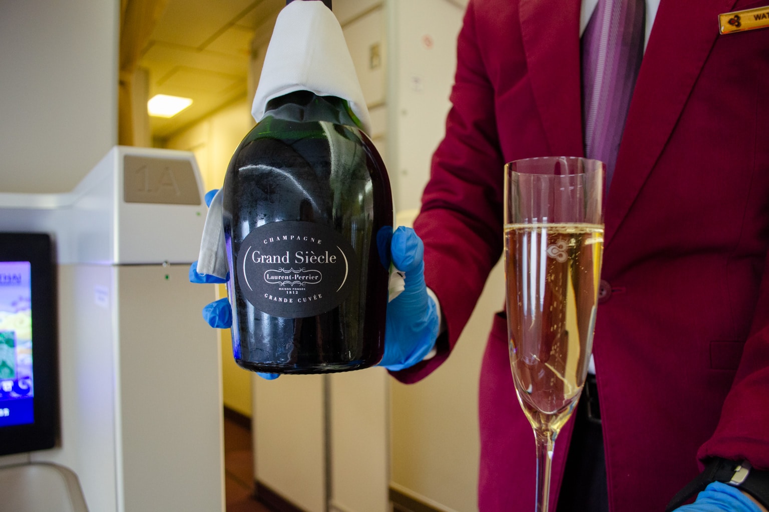 I was then offered a choice of welcome drink, and I opted for a flute of Laurent-Perrier Grand Siècle Champagne, which was quite generously topped up before departure.
