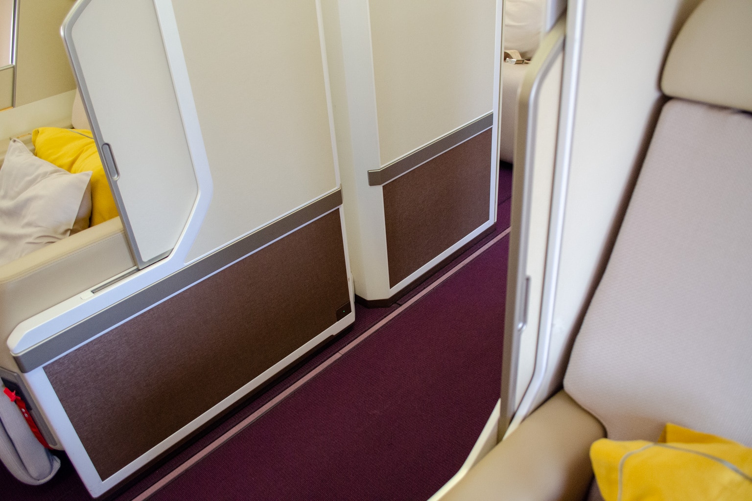These suites are open and very spacious, but without a door, lack privacy as compared to some other modern First Class products.