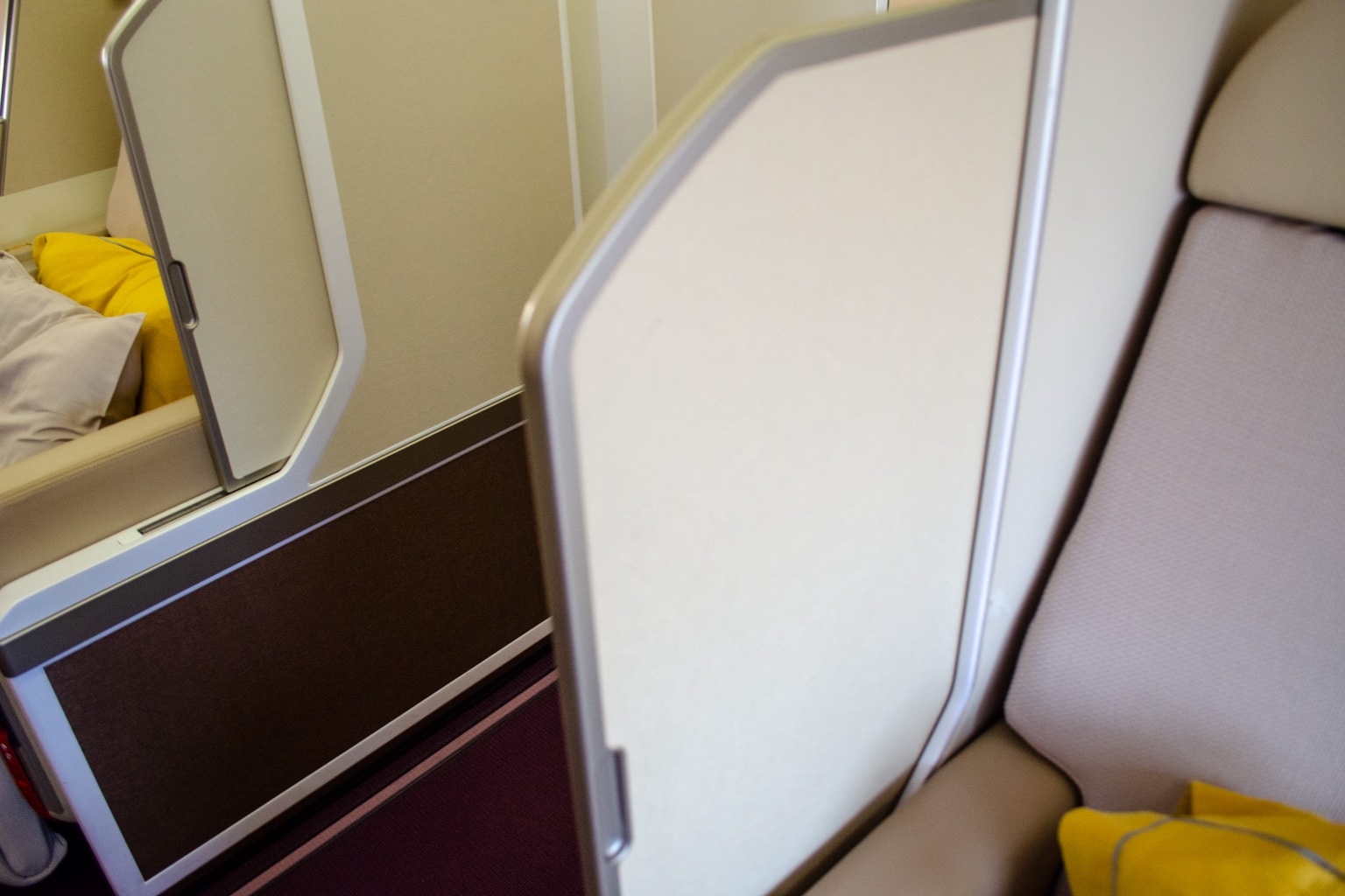 To the right, there’s a sliding partition which can help with privacy; however, it’s quite limited even when fully deployed.