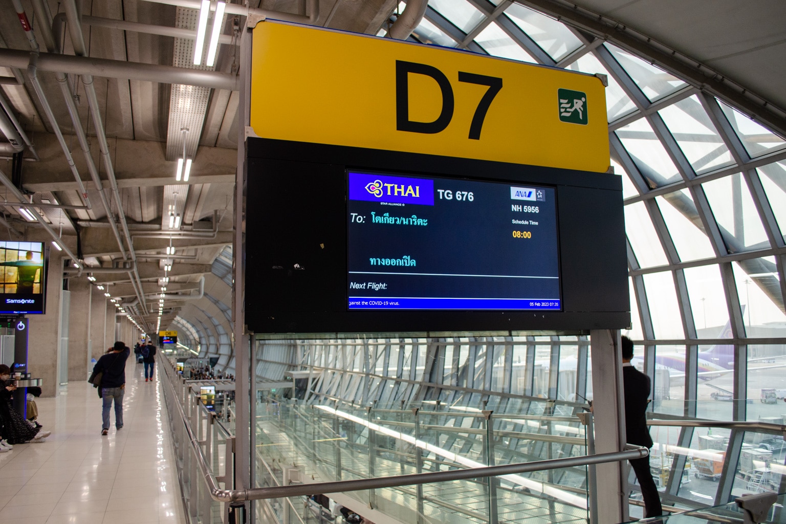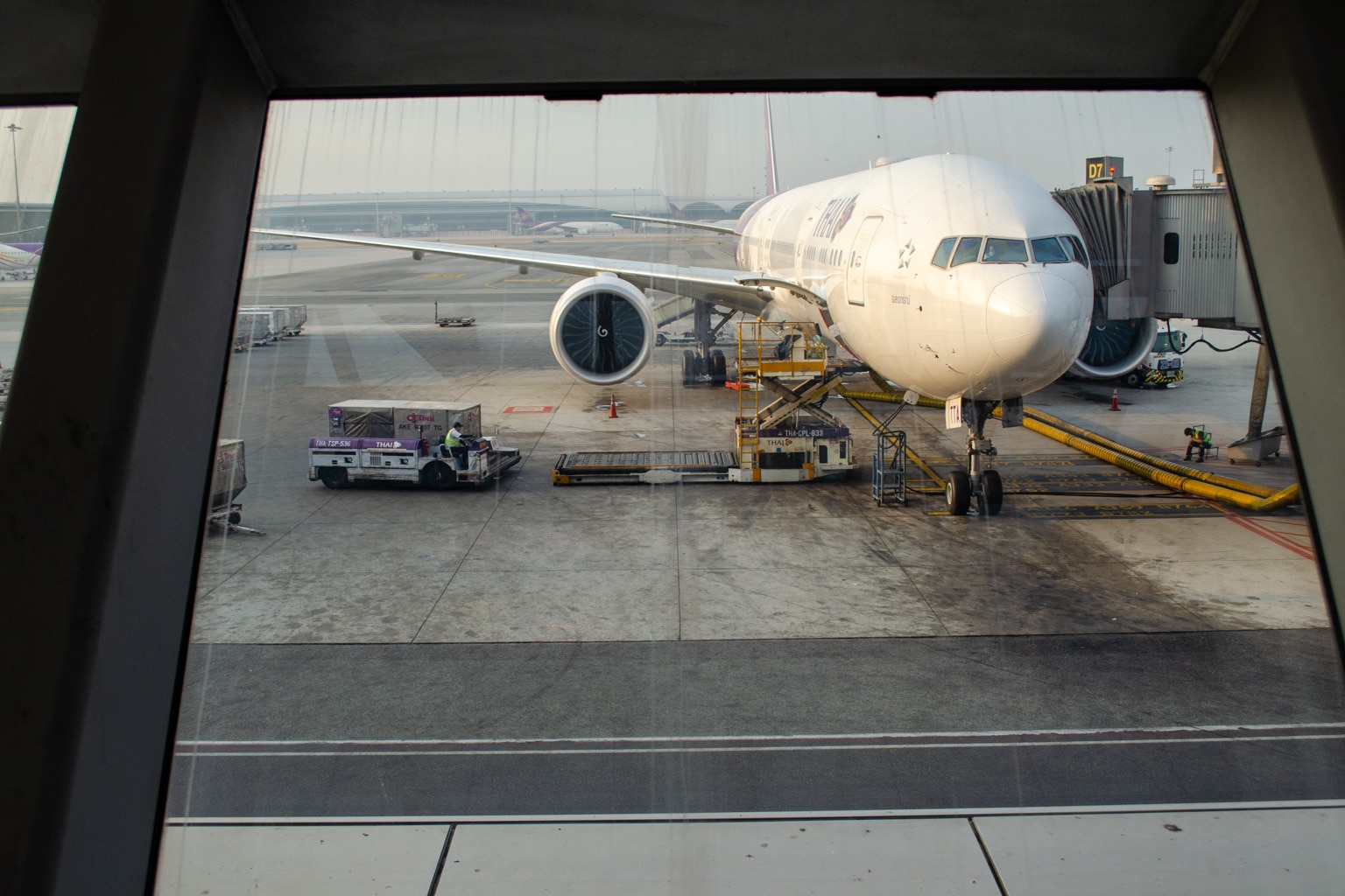 After polishing off a few dishes and drinks, I was met by my Thai Airways representative, who chatted with me as we strolled through the terminal to Gate D7.