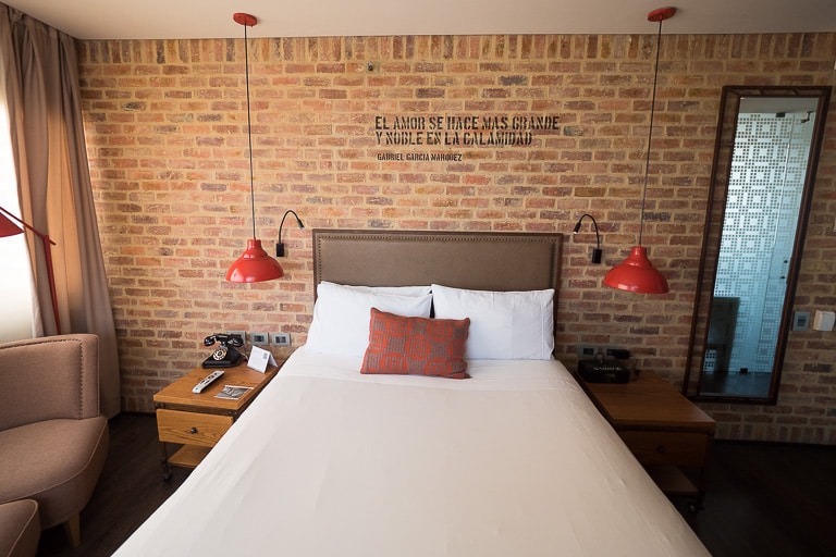 The furniture and decorations also matched this aesthetic, including a quote by world-famous Colombian writer Gabriel García Márquez painted on the wall above the comfortable king bed.