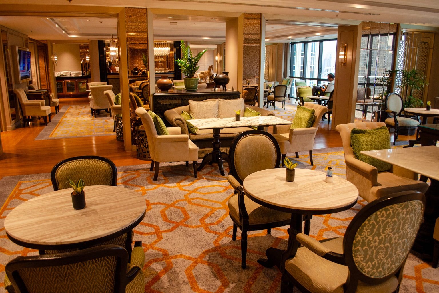 The far side of the Executive Lounge is covered in windows, once again bringing in an ample amount of natural light inside.