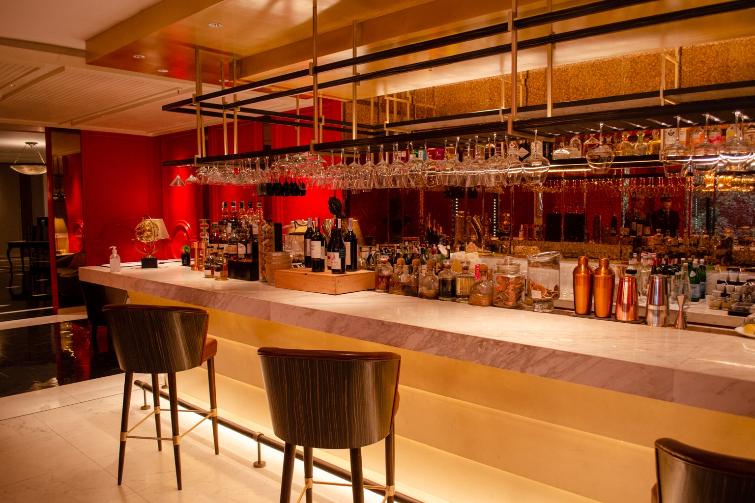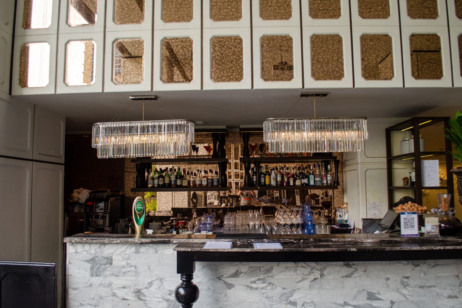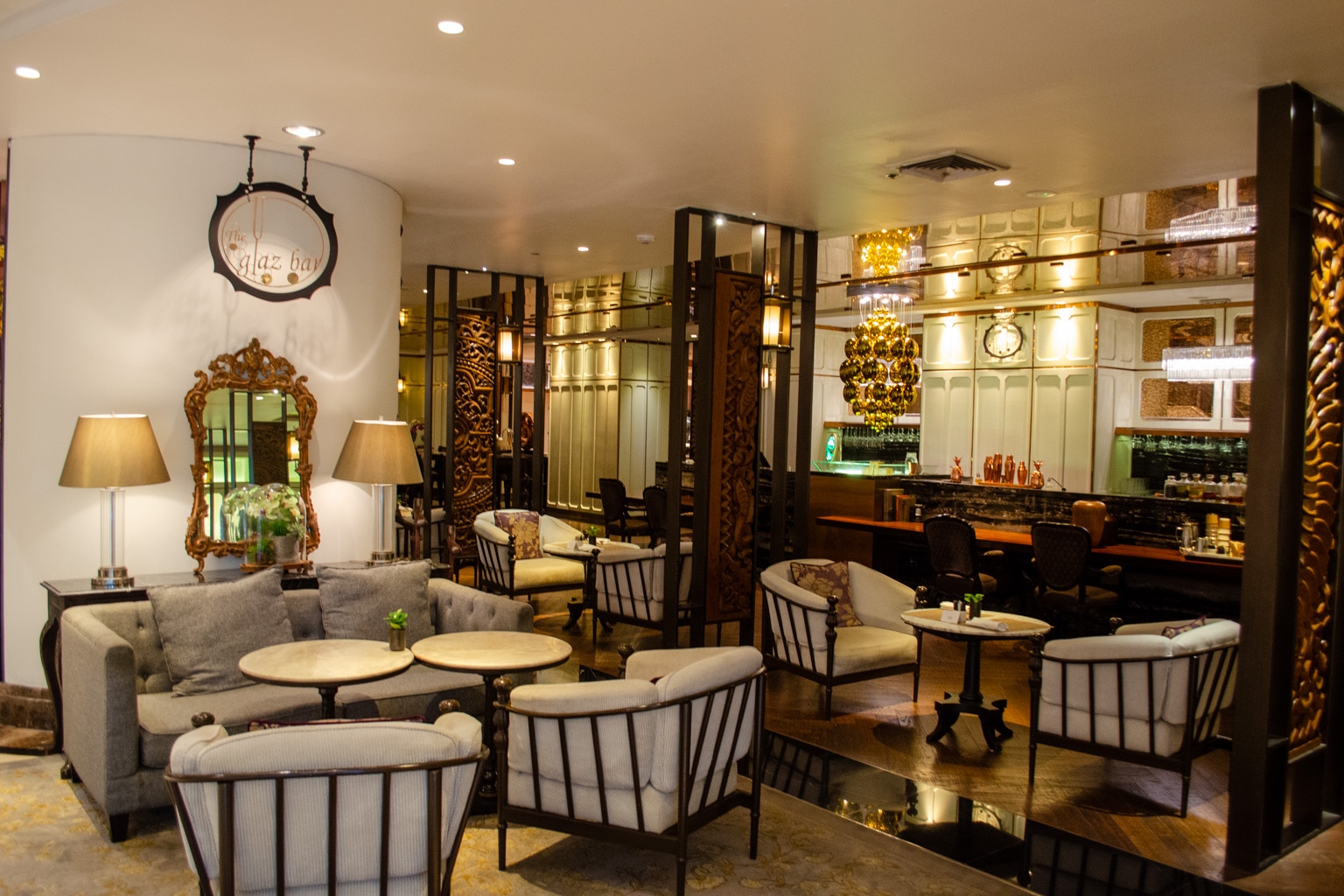 The Glaz Bar mainly features white colours with black accents and has a royal feel to it – paying homage to the hotel’s location once as a royal palace.