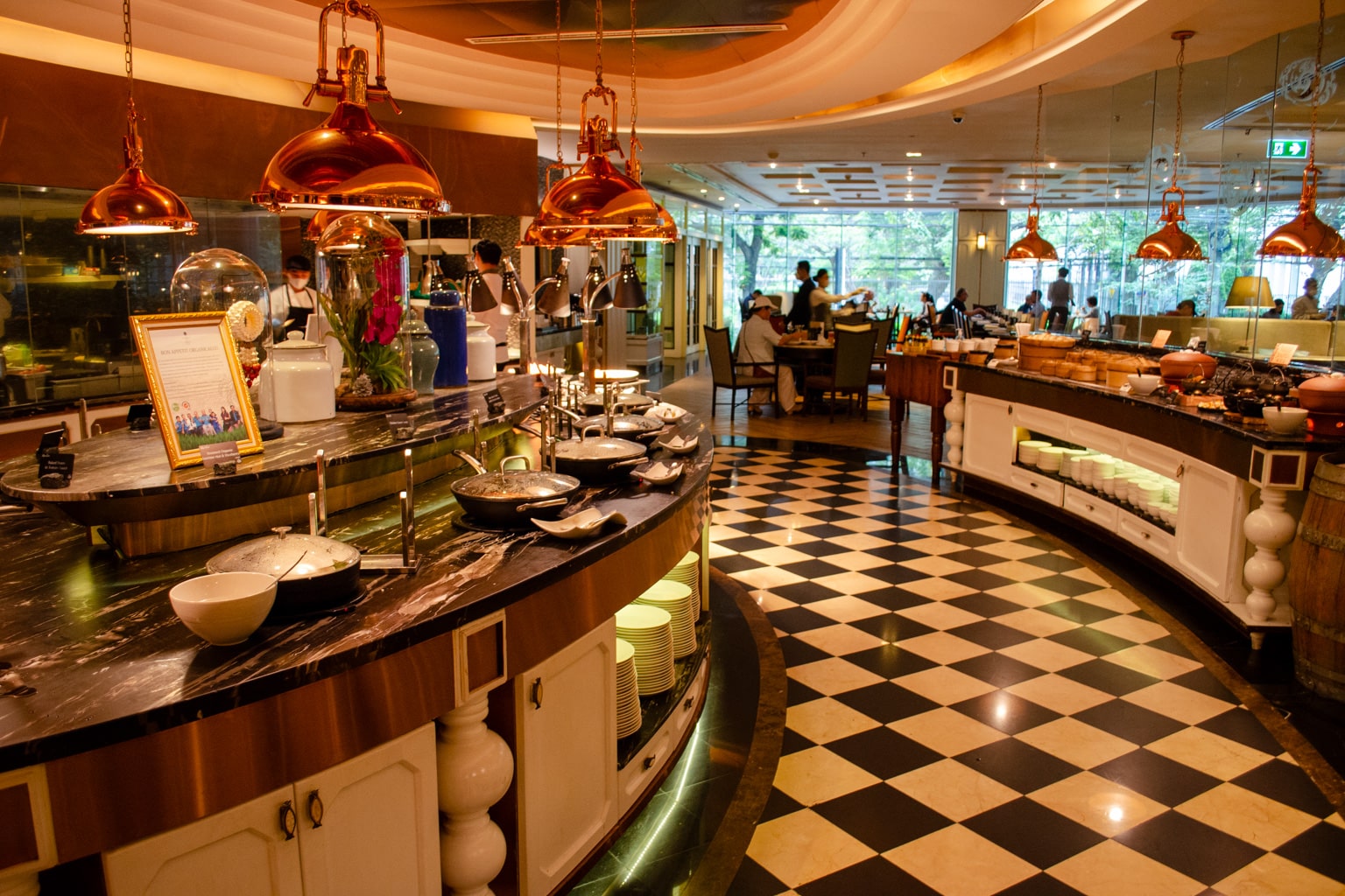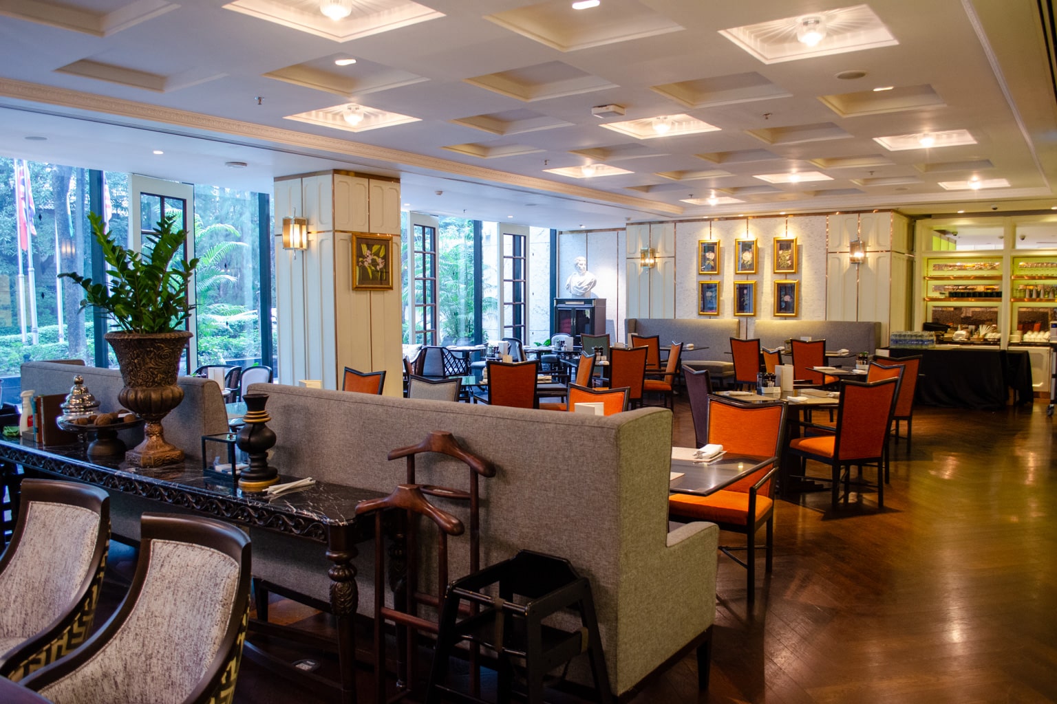 The décor is very grand yet elegant, and gives feelings of home. The entire space is well-lit, with tall ceilings and an overall casual quality – making it a great place for all-day dining.