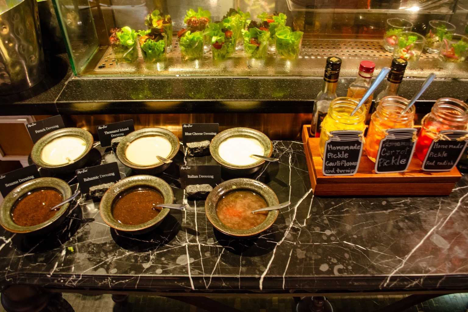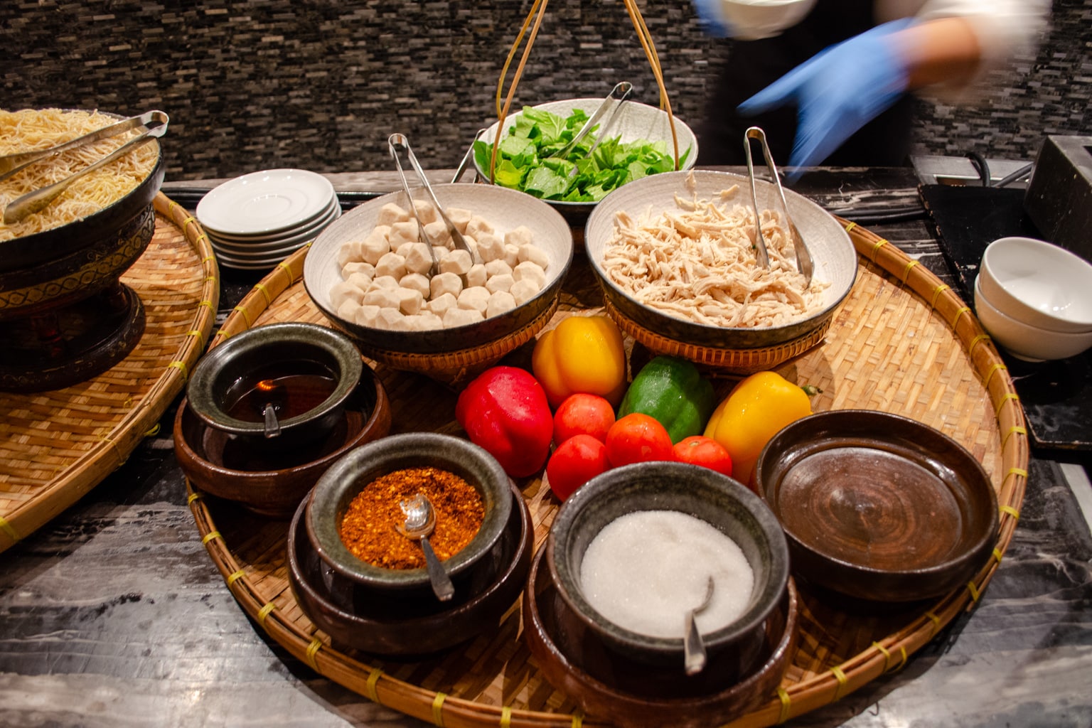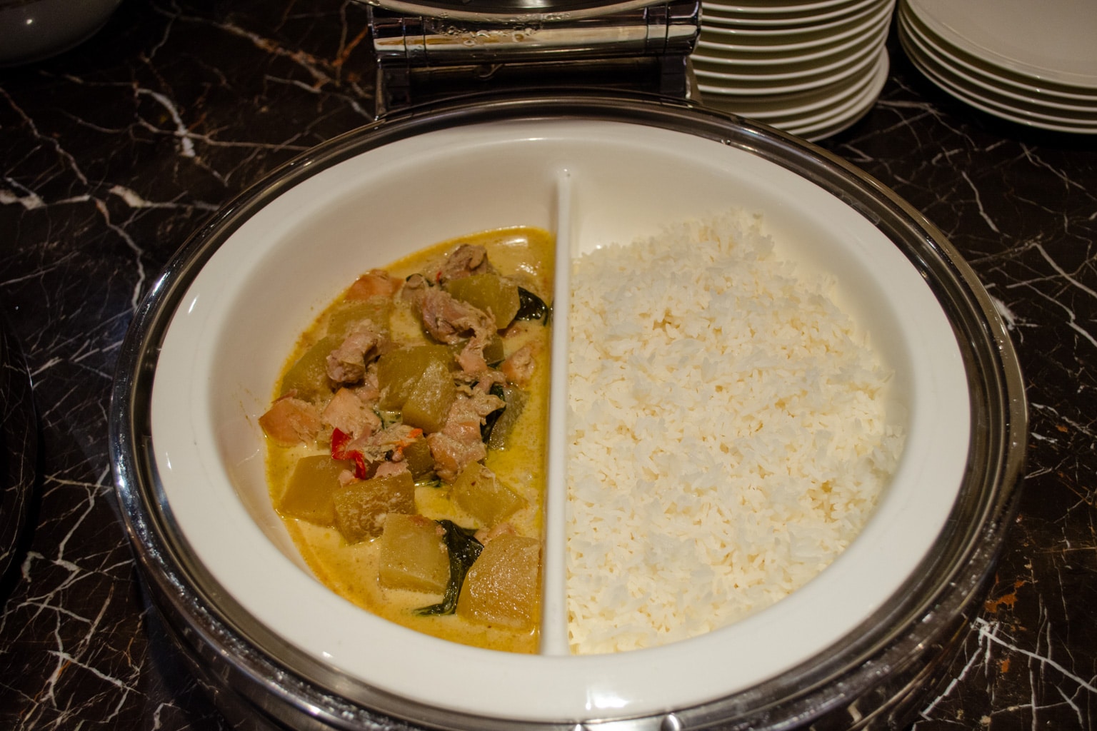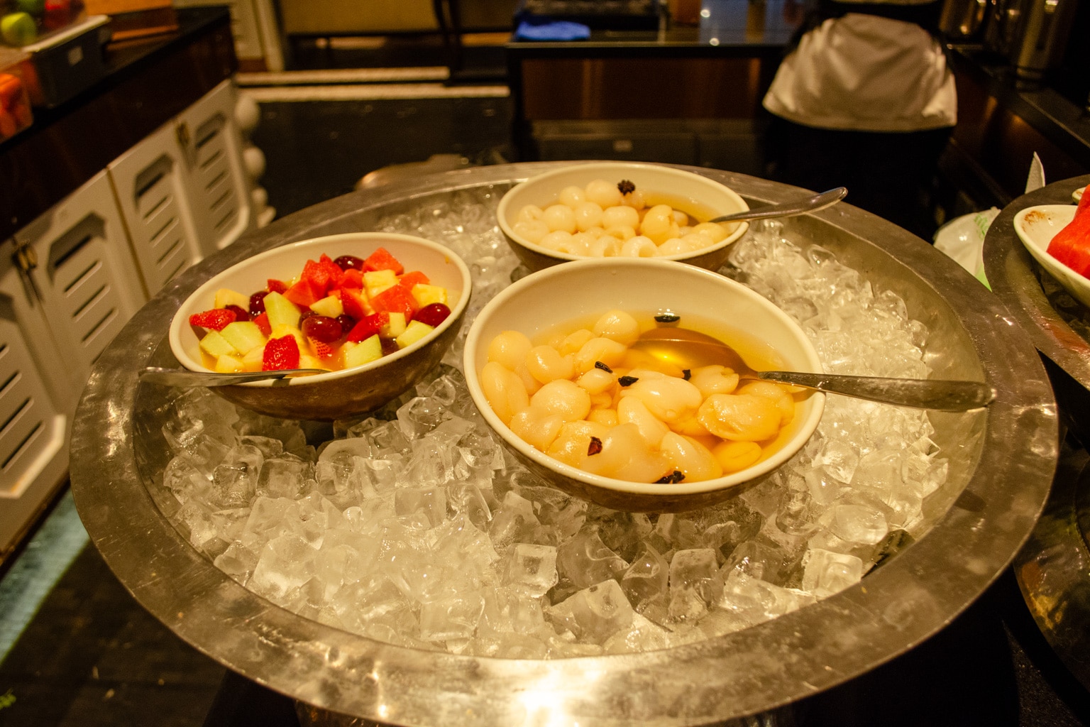 There are lots of different hot buffet items available, including fried rice, red bean congee, silken tofu, beans, bacon, dim sum, and even Hainanese chicken rice, to name a few. You’ll also find dishes from a number of world cuisines, including Indian, Thai, Western, Chinese, and Middle Eastern.