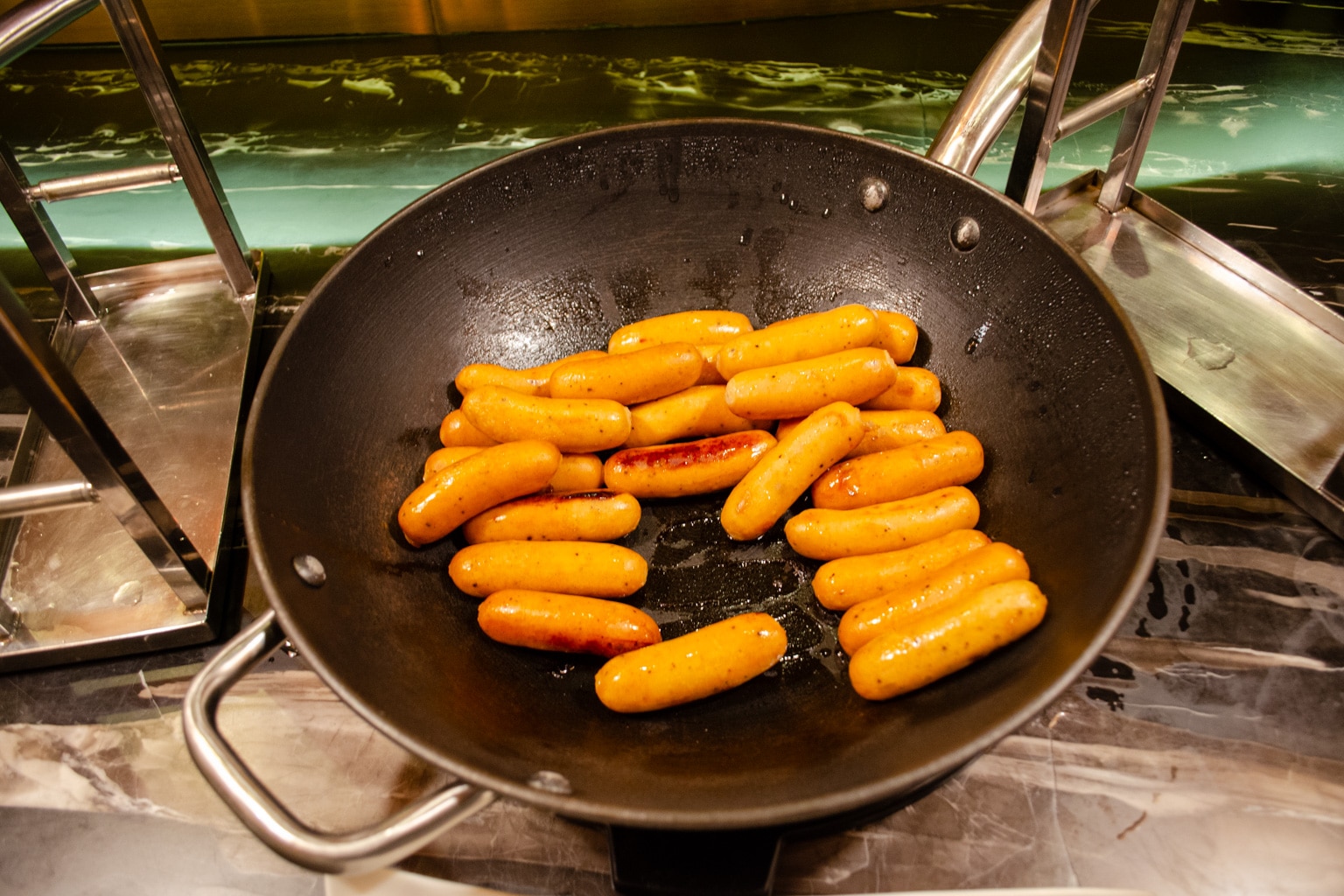 The restaurant features cuisine from across the world, with plenty of variety to appease a wide range of guests. There’s a particular focus on seafood for the dinner service, which is when crab legs are available from the buffet.
