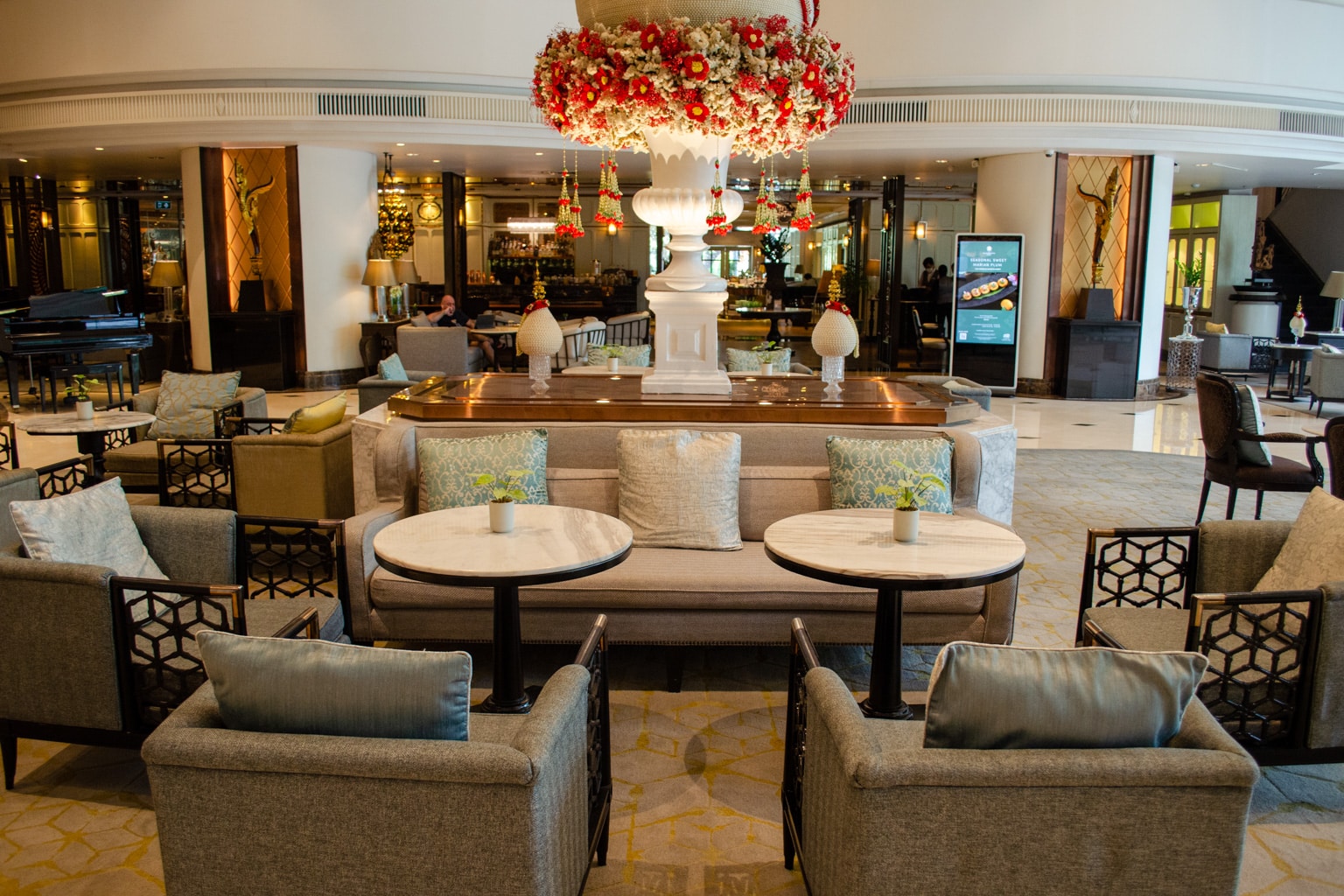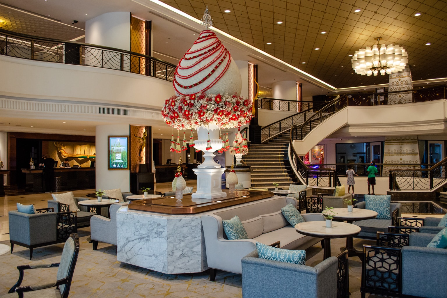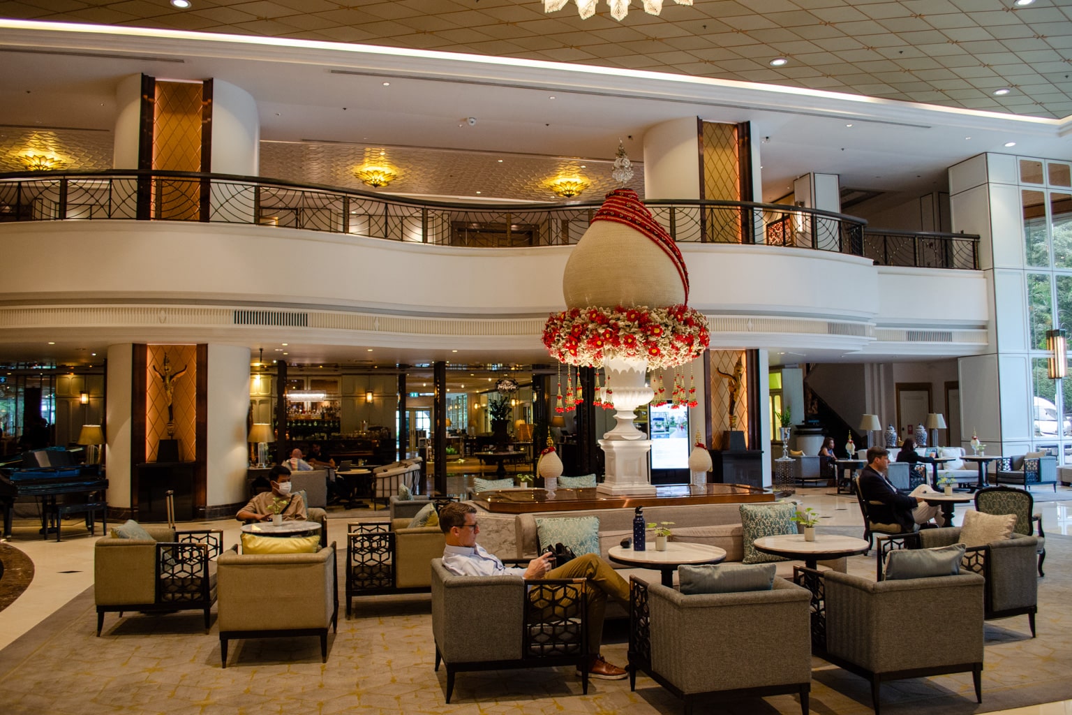 The lobby at The Athenee Bangkok is grandiose, with a gorgeous grand staircase set as the main attraction.