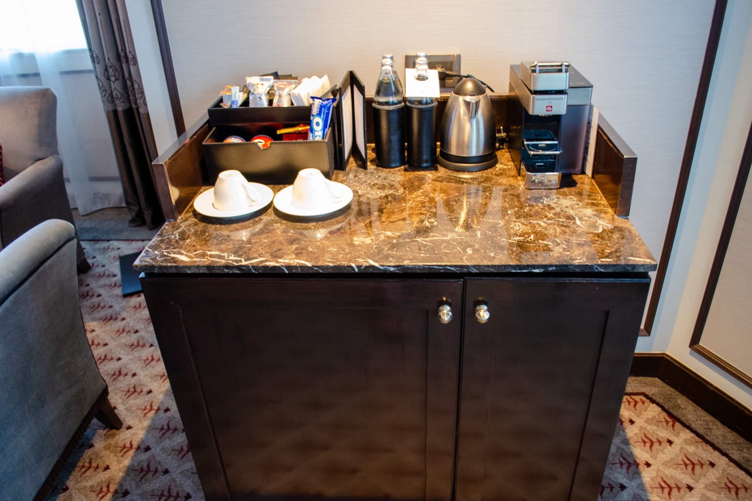 The butler in the lounge went over all of the services available to us at the hotel, and then we headed back to the elevators and down to our room on the 21st floor.